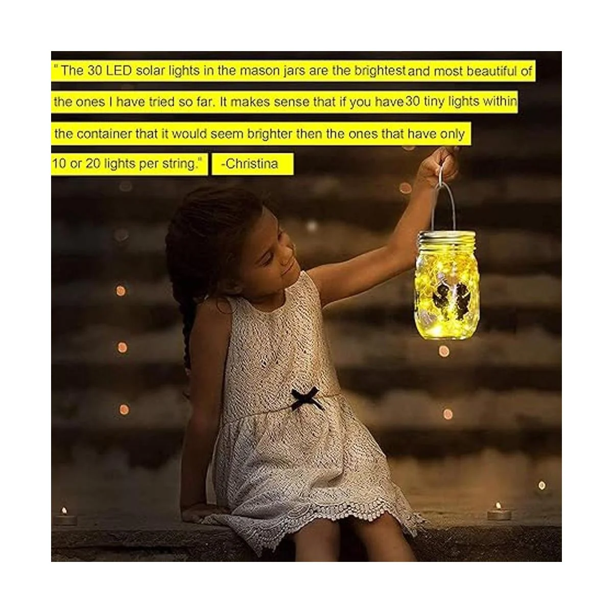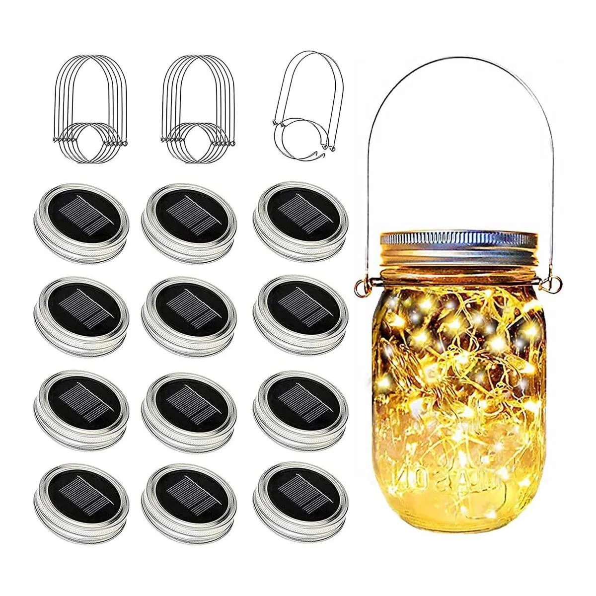 Yeuago Mason Jar Paquete de 12 luces solares de luciérnaga para exteriores, 30 luces LED para exteriores, tira de luces solares sin tarros, tira de luces solares impermeables con ganchos para tarros de boca regular