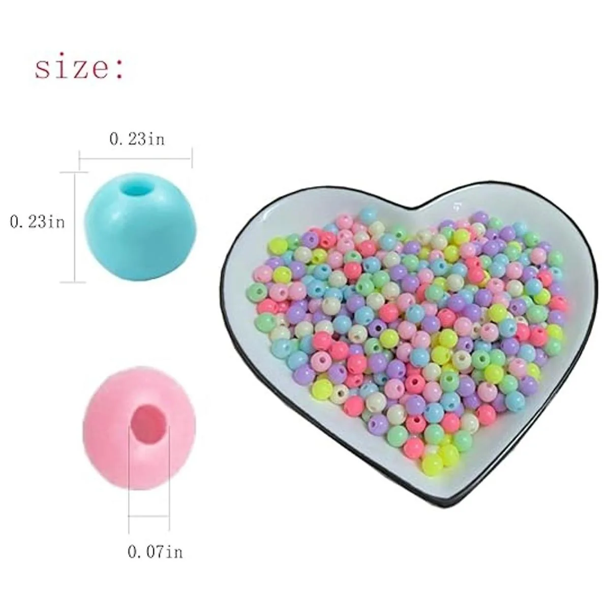 Tamaño cuidadoso: las bonitas cuentas pequeñas son de aproximadamente 0.236 in de diámetro, el agujero es de 0.067 in, que es de buen tamaño para proyectos de manualidades haciendo pulseras, collares, cadenas de pies, llaveros, colgantes de teléfono celular, etc. Puedes utilizarlos para combinar con tu ropa y bolsas de varios colores o estilos. Añade tu encanto personal.