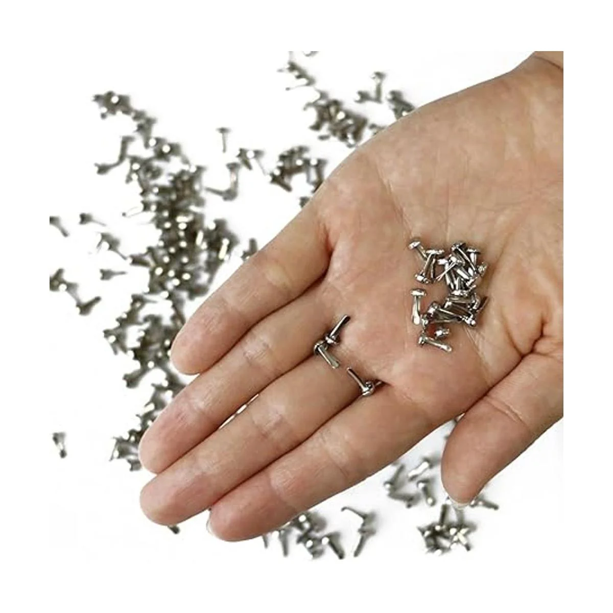 Uso: ampliamente utilizado para tus manualidades de papel, álbumes de recortes, tarjetas o para sujetar fotos, cintas y otros artículos. En primer lugar, debes hacer un agujero con un pin de empuje en el lugar que desees, entonces debes reemplazar el pin de empuje con el clavo, el tamaño del agujero hecho por un pin de empuje es simplemente fino