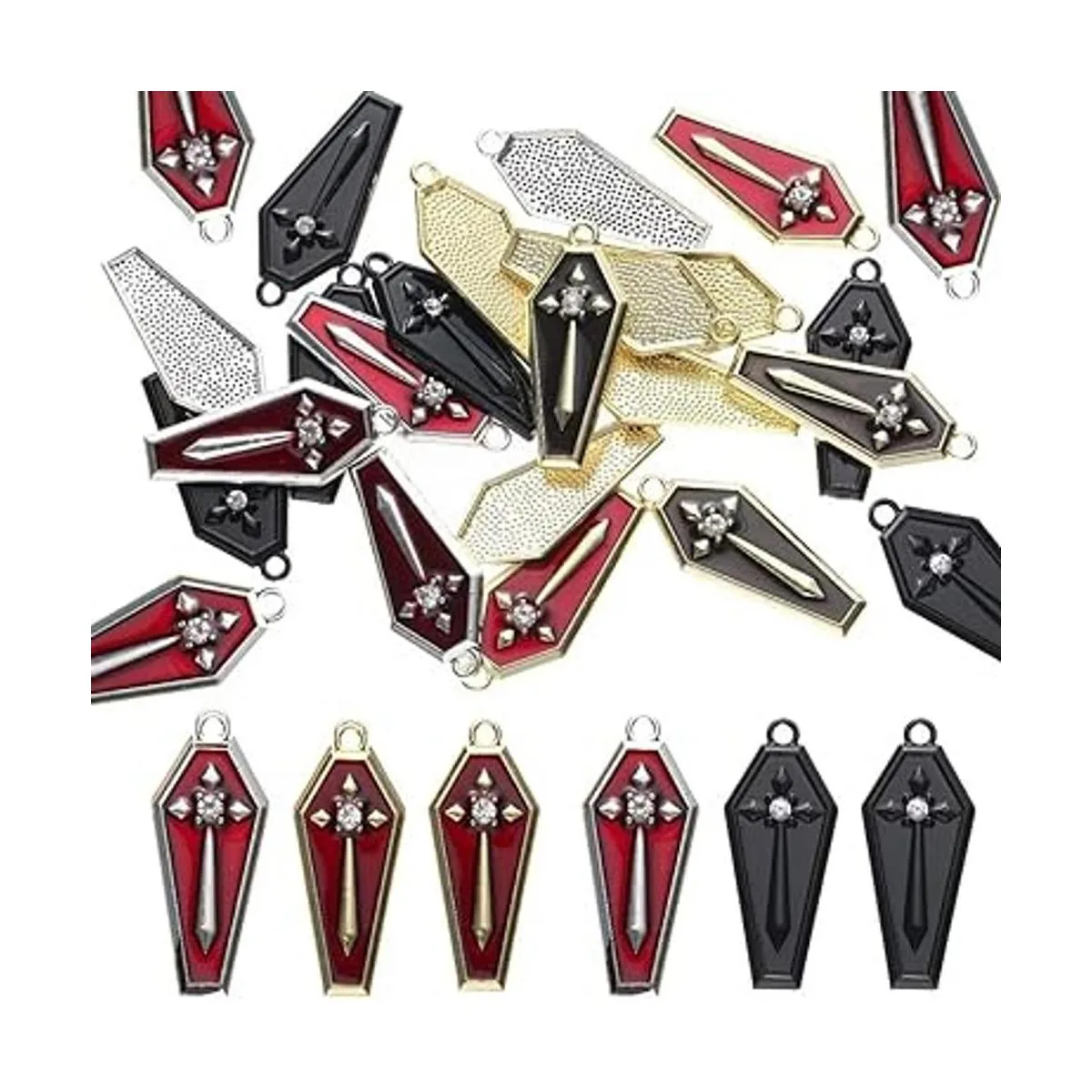 YEYULIN 64 dijes barrocos surtidos de oro negro y rojo con diseño de calavera esmaltada de ataúd con cruz de Halloween para aretes, collares, pulseras, joyería y manualidades, Zinc Metal Acero aleado, Sin gemas.