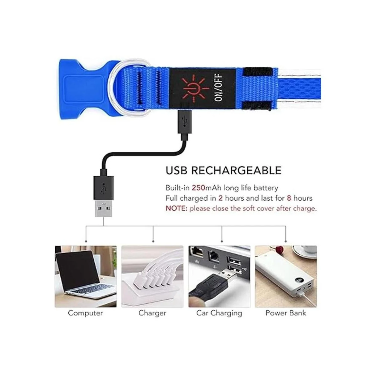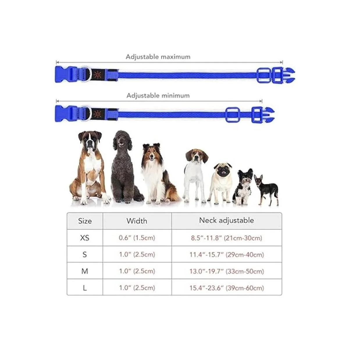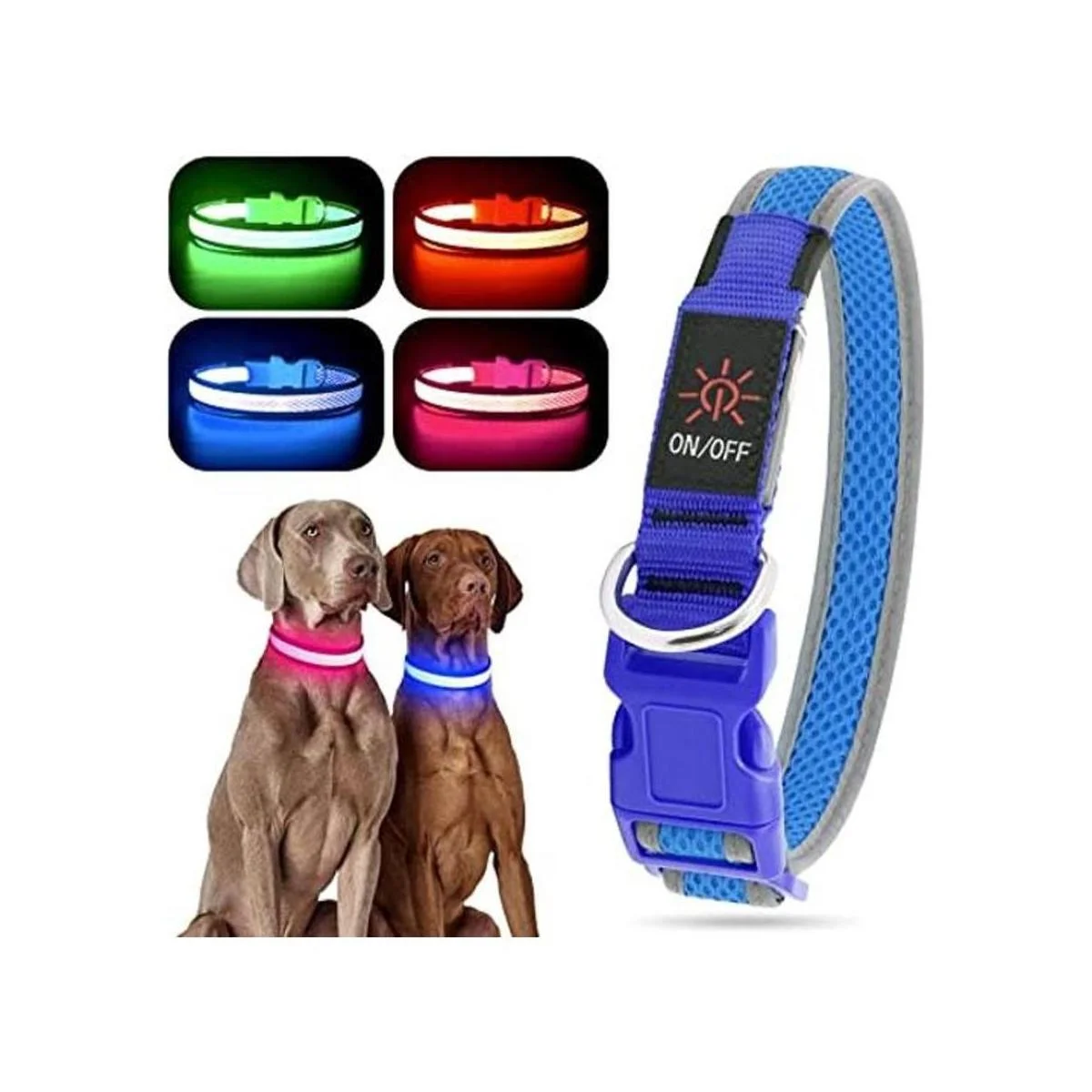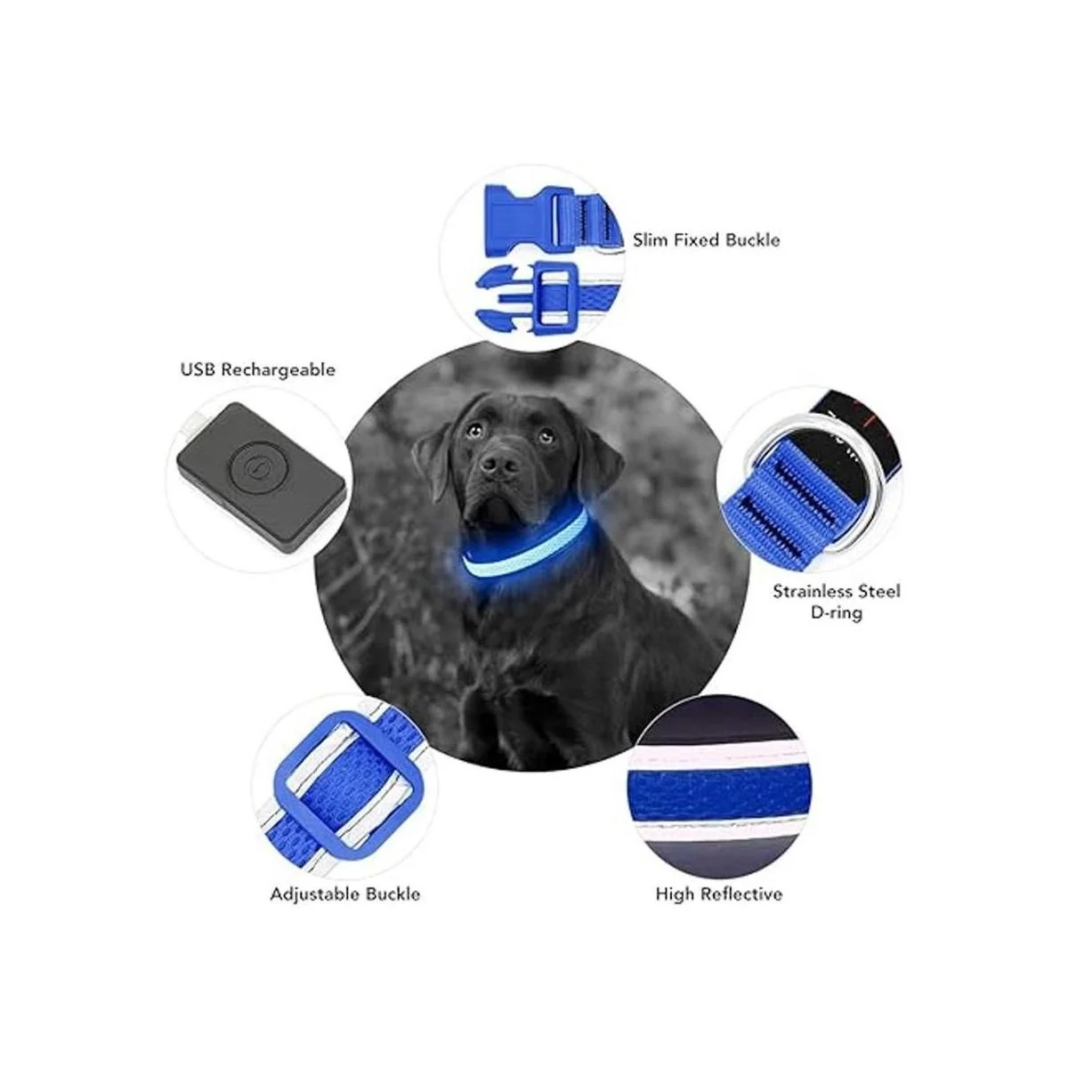 YFbrite Collar de perro iluminado, collar de perro LED recargable, collar de perro intermitente, collar de perro reflectante ajustable que brilla por la noche azul, mediano