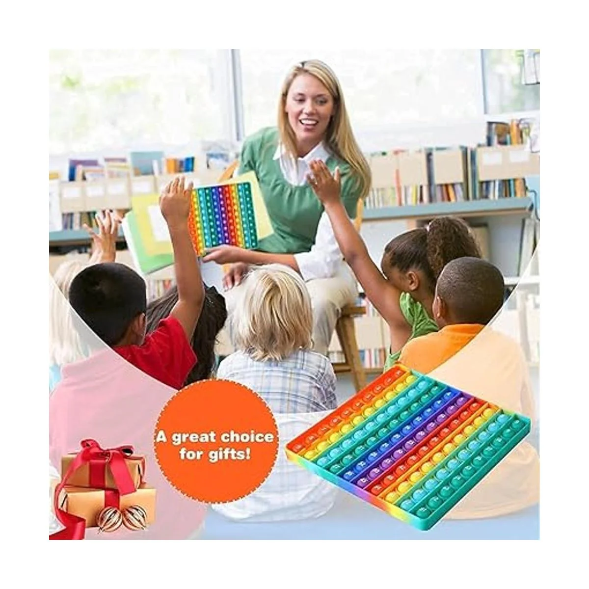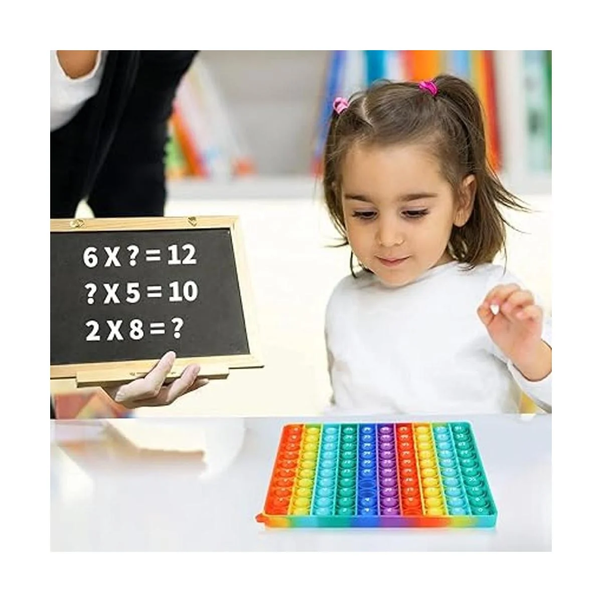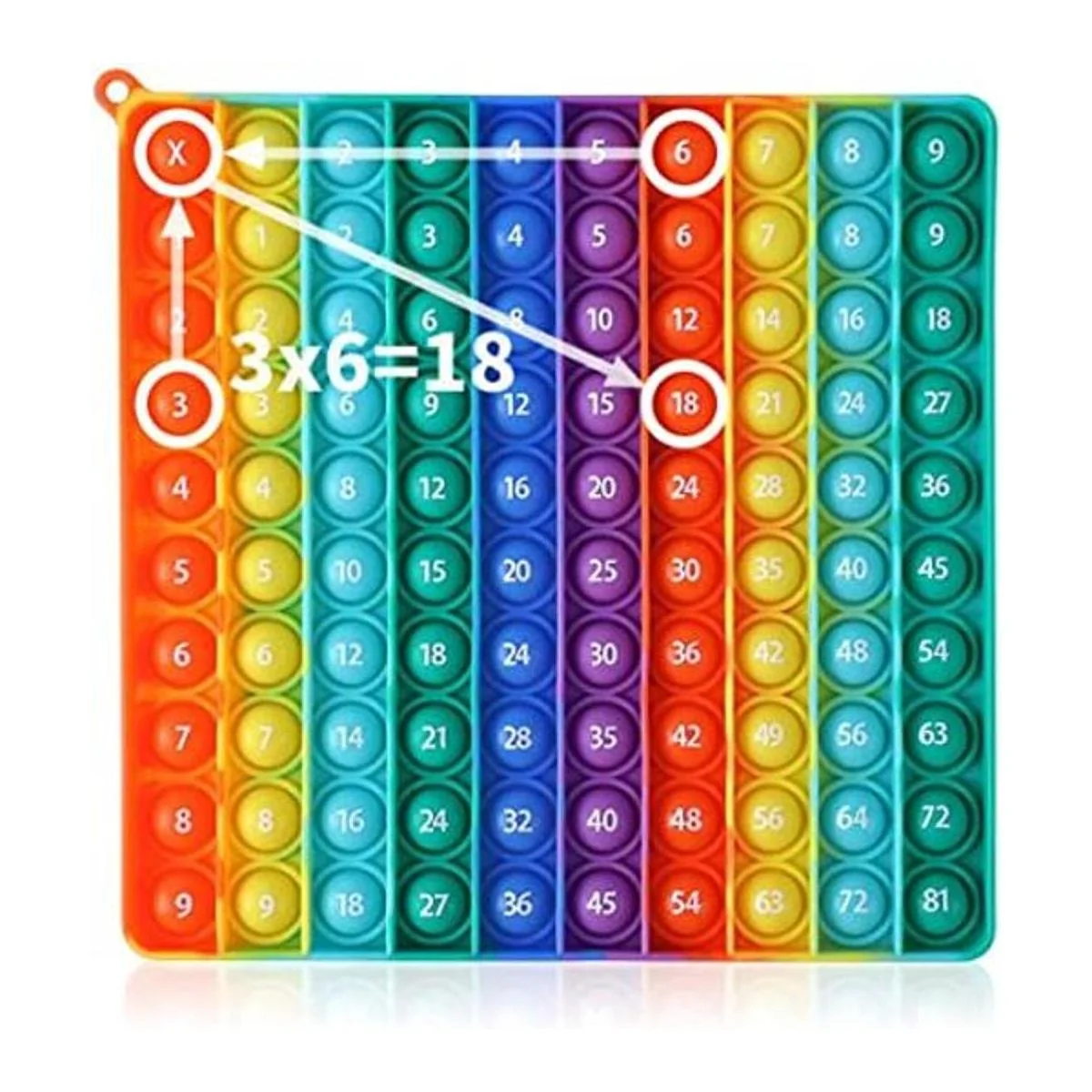 Tabla de multiplicación divertida y duradera Simplemente presiona la burbuja hacia abajo y harán un ligero sonido de p0p. Puedes jugar este juego con tus amigos, los jugadores se turnan para presionar cualquier número de burbujas que deseen en una sola fila. El jugador que presiona la última burbuja pierde. Luego dale la vuelta y empieza de nuevo.