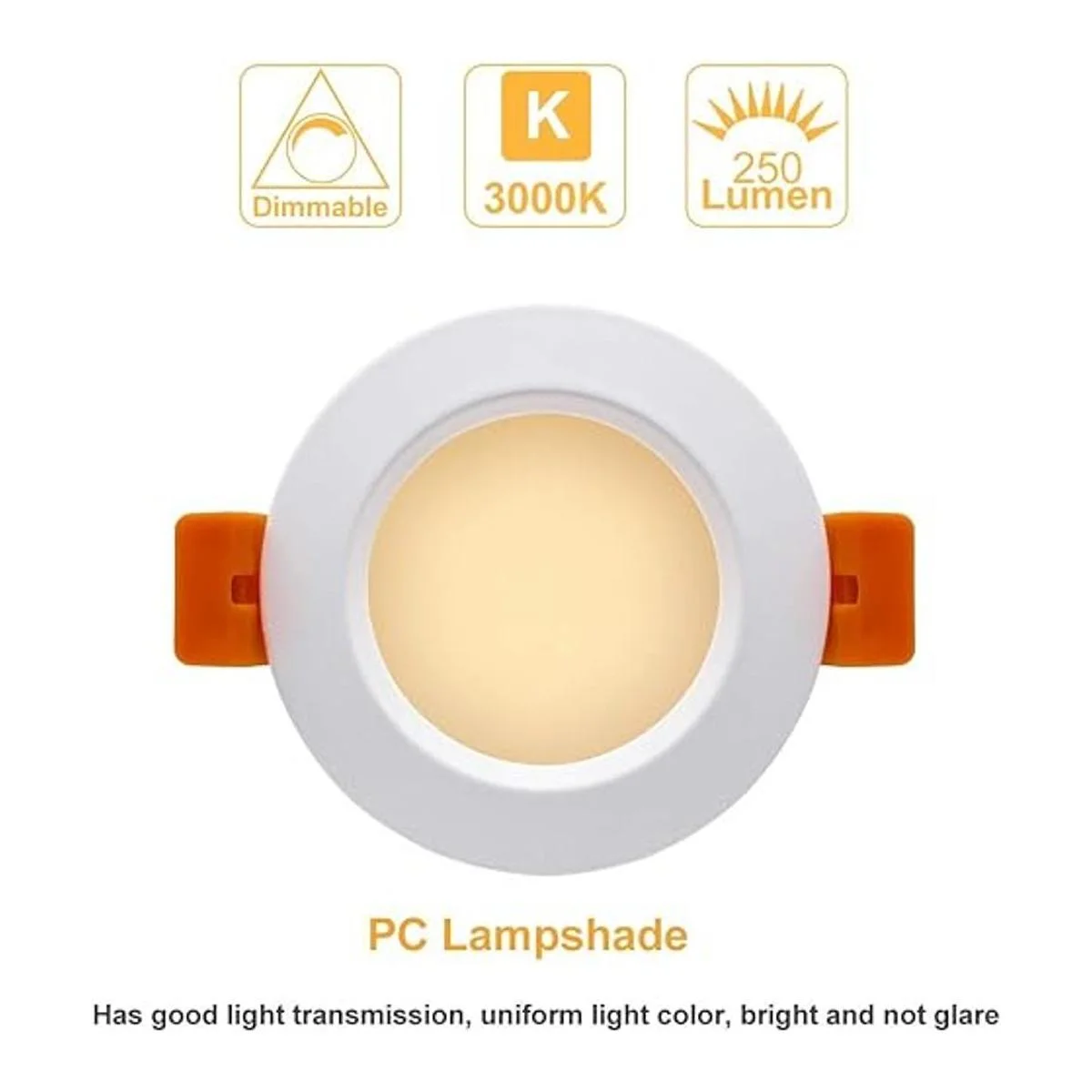 YGSTech Lámpara empotrable LED de 2.0 in, regulable, 3 W equivalente a halógenos de 35 W, blanco cálido de 3000 K, CRI80, luz de techo LED con controlador LED paquete de 4