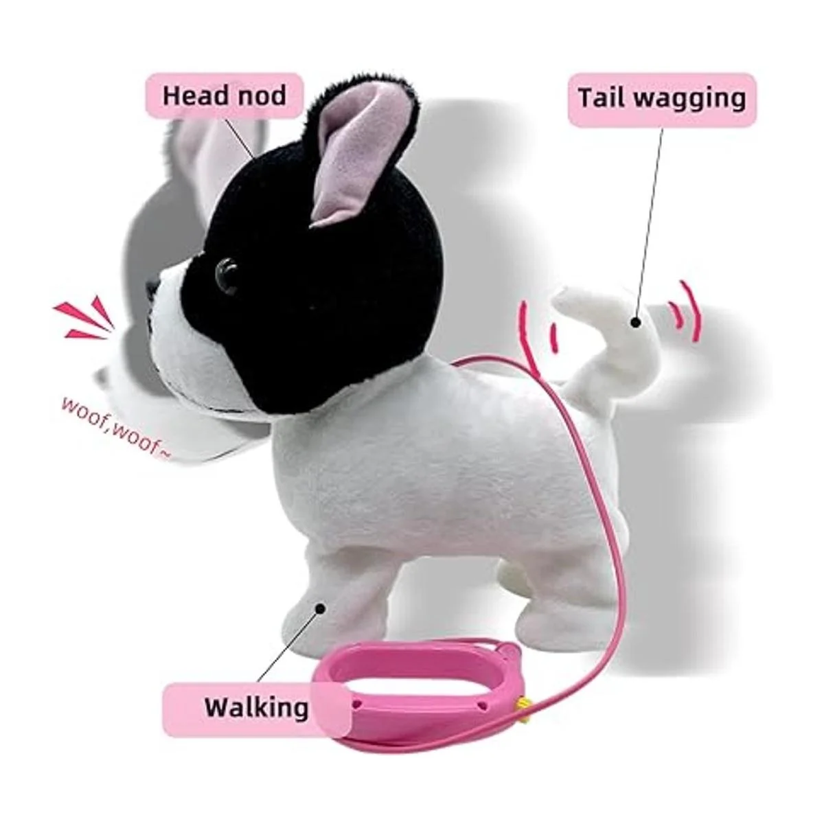 YH YUHUNG Juguete de peluche con correa de control remoto para perros y perros interactivos para perros con diseño de bulldog francés para caminar negroblanco