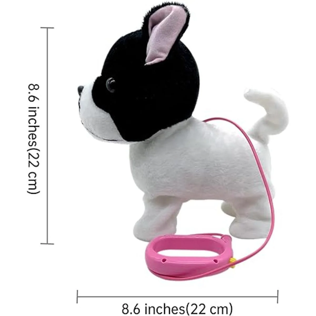 Juguete bulldog para caminar para mascotas. Altura: 8 pulgadas, longitud: 7 pulgadas, longitud de la correa: 27.6 in