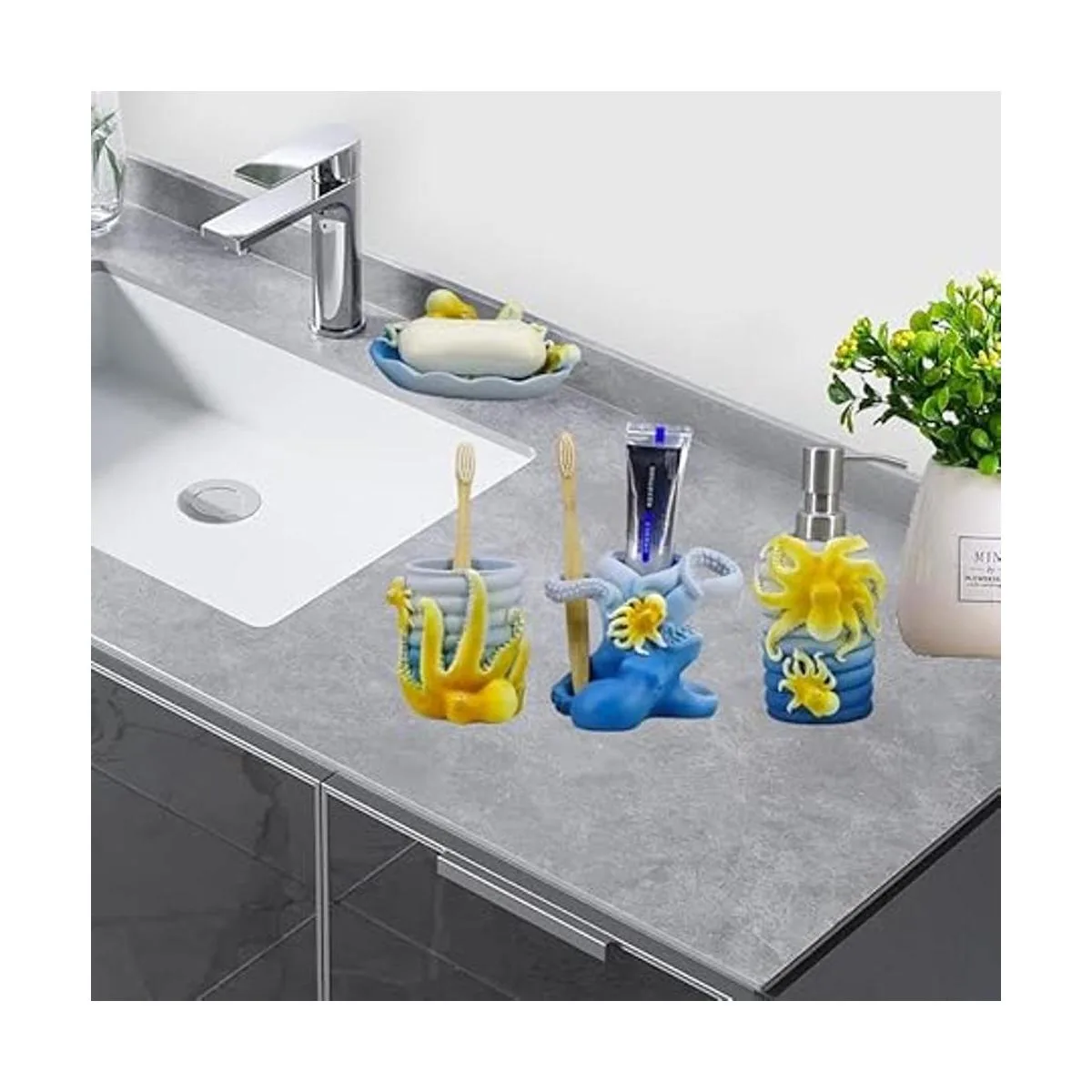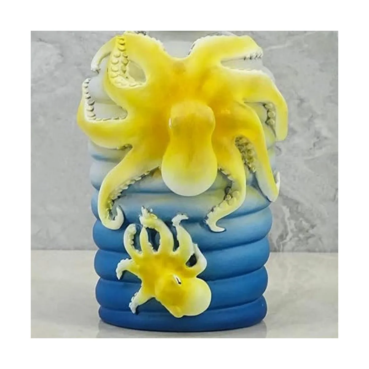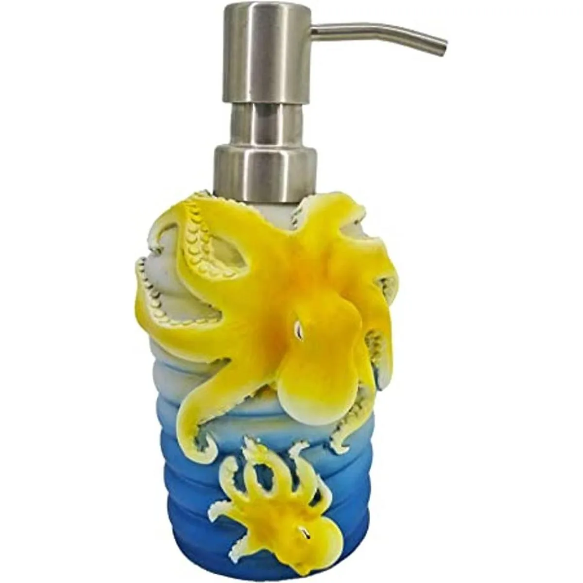 YHHRESINKING Dispensador de jabón de resina, pulpo para madre y bebé, accesorio de baño de playa, decoración de baño familiar con pulpo, decoración costera azul océano