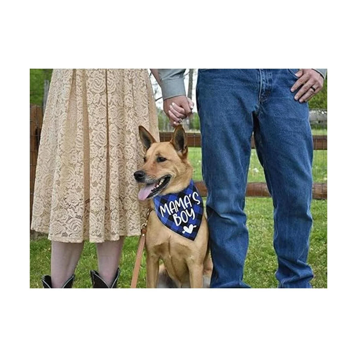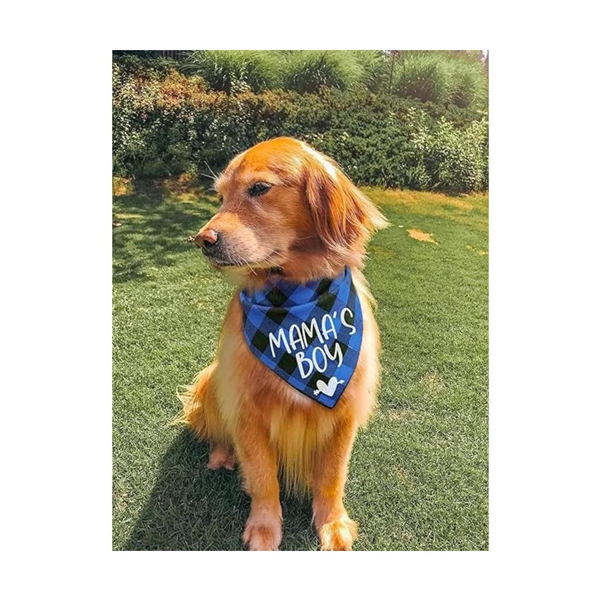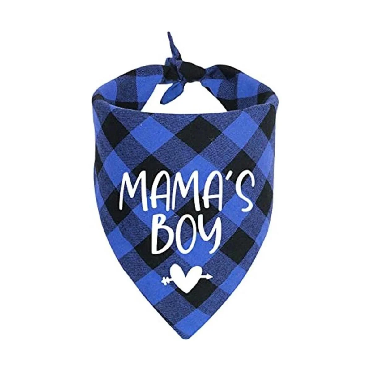 YHTWIN Bandanas de perro de algodón a cuadros azules de Mamas Boy para mascotas, bufandas para mascotas, bufandas para fiestas de cumpleaños, accesorios para mascotas y perros