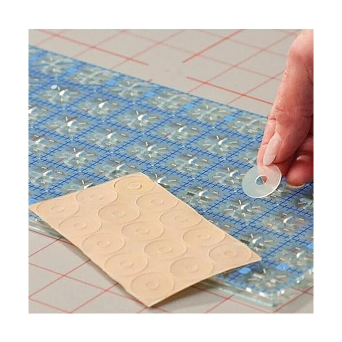 YICBOR 1 plantilla de regla Meander 1 pie de regla de acolchado de movimiento libre 1 paquete de anillos adhesivos antideslizantes para regla regla de 0.118 inpie de regla de vástago bajo agarres