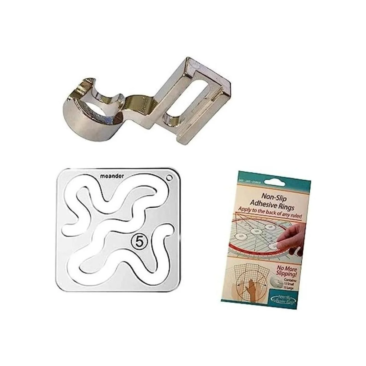 El paquete incluye: En este juego, recibirás 1 plantilla de regla Meander, 1 pie de regla de vástago bajo y 1 paquete de agarres de regla de anillos
