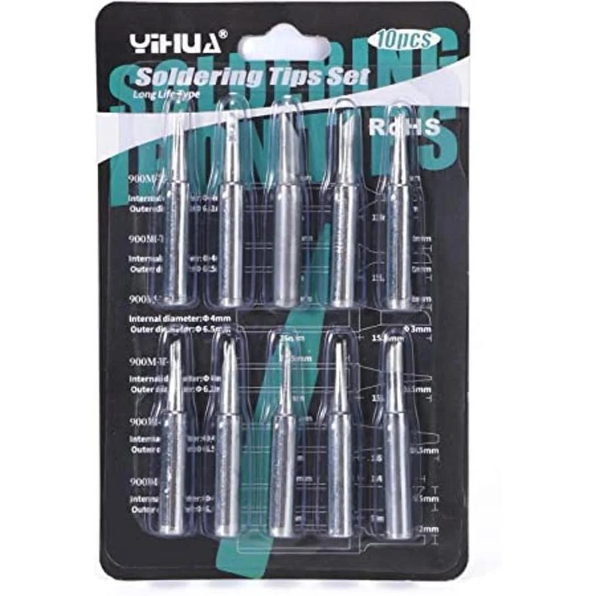 YIHUA 1201 Puntas de soldadura preestañadas sin plomo 10 piezas surtido en un juego compatible con estaciones de soldadura y hierros YIHUA y WEP, duraderas y duraderas