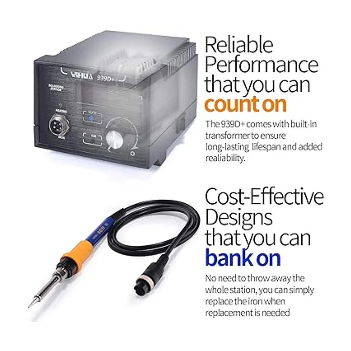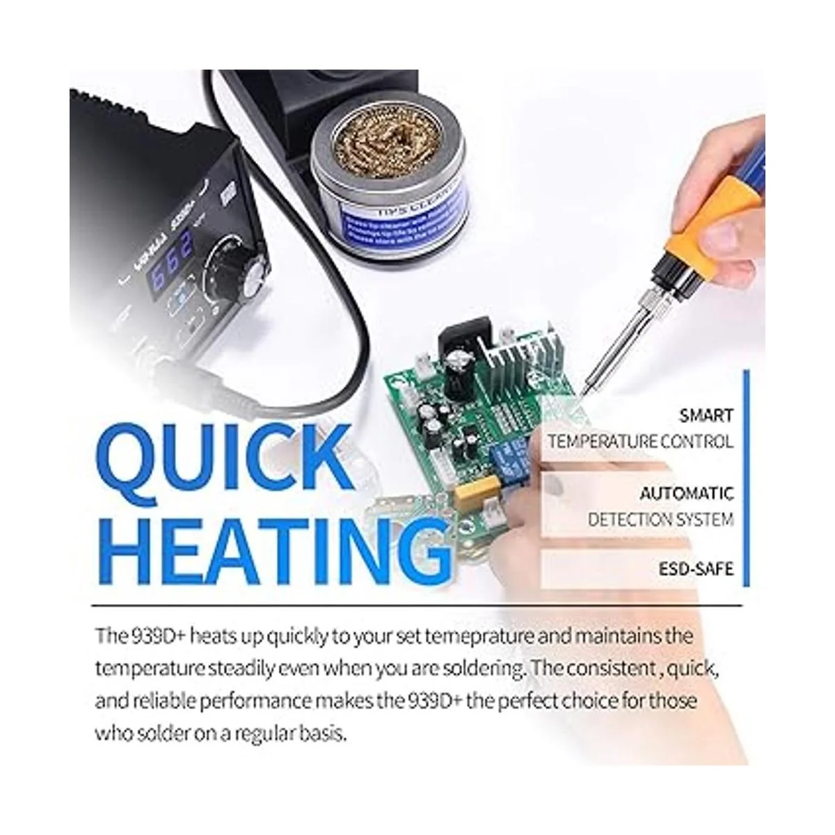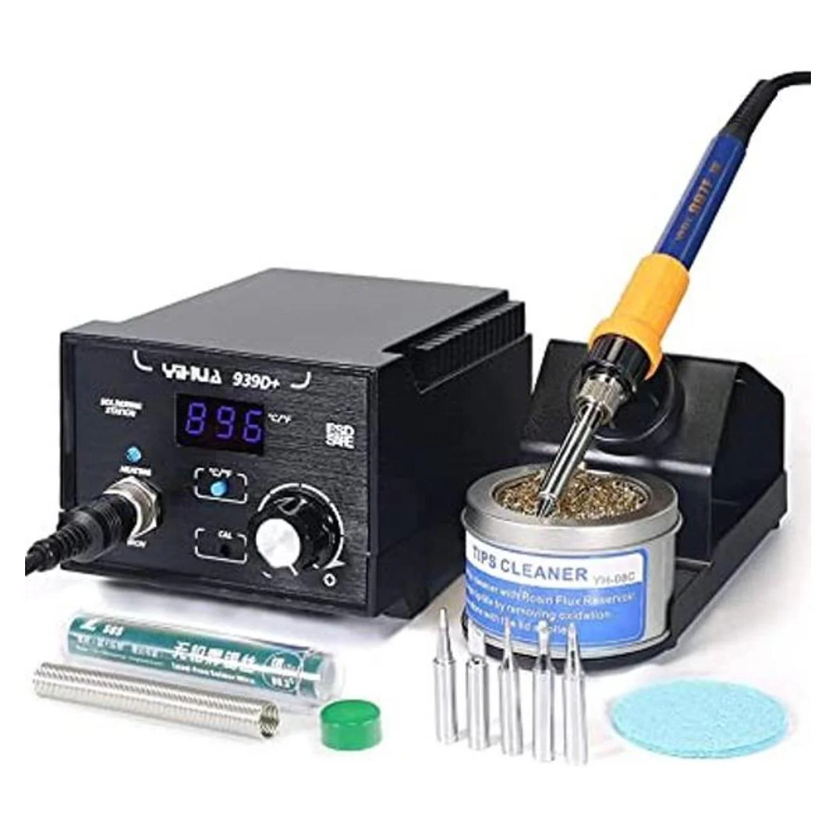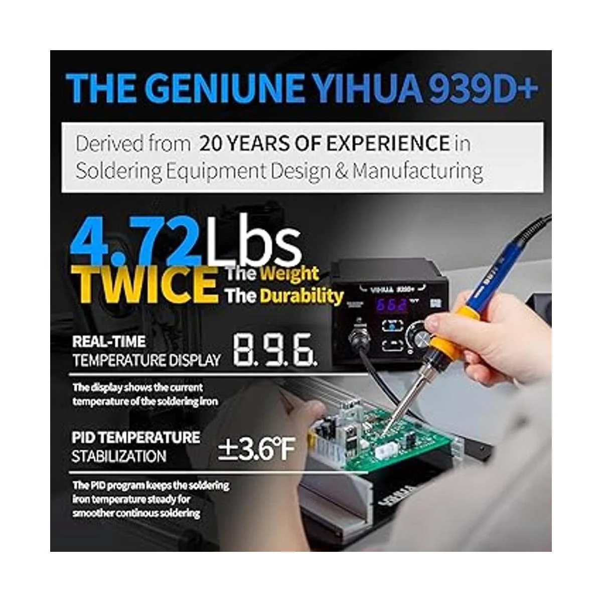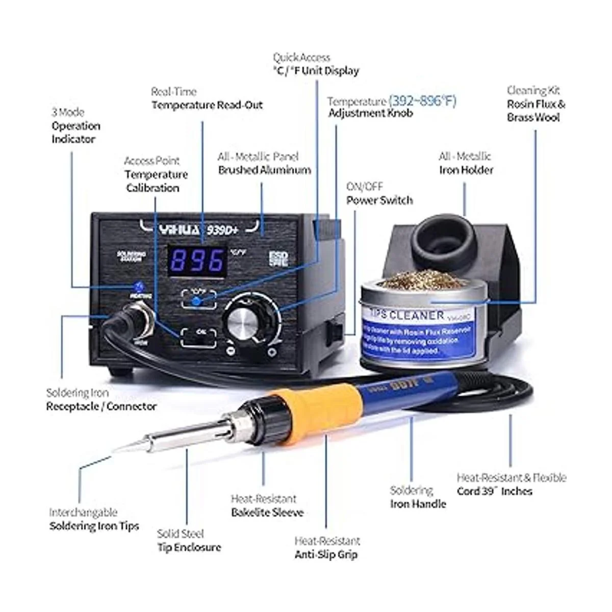 Yihua 939D Estación de soldadura digital profesional equivalente a 75 W con interruptor ESD SAFE F C con extras, 3 puntas de soldadura, cable de soldadura sin plomo y mecha
