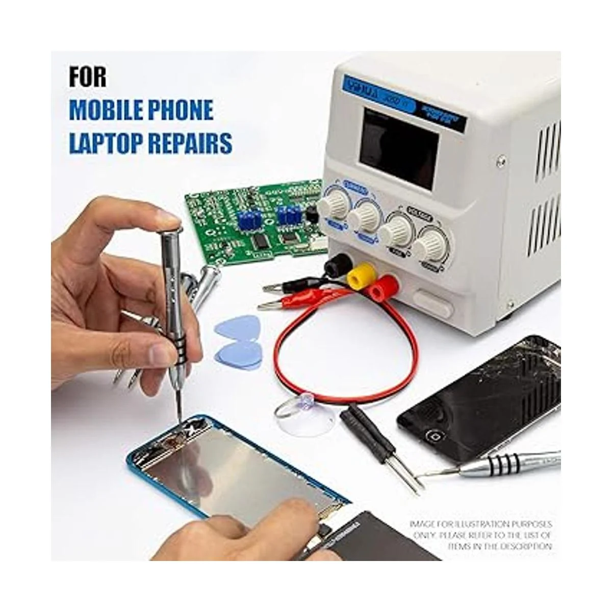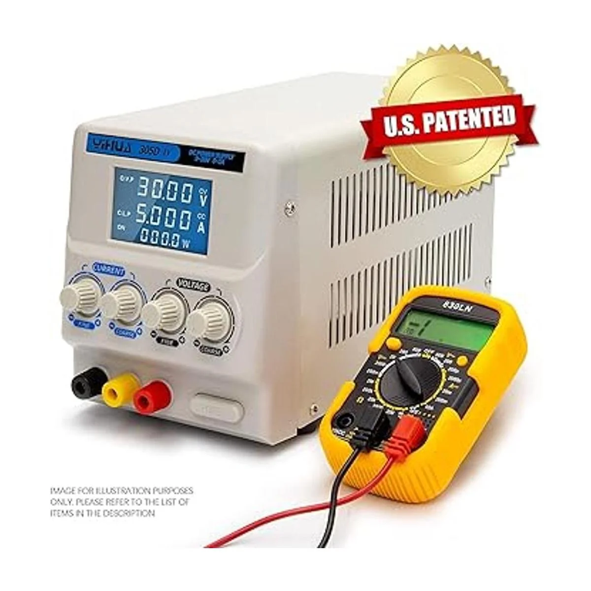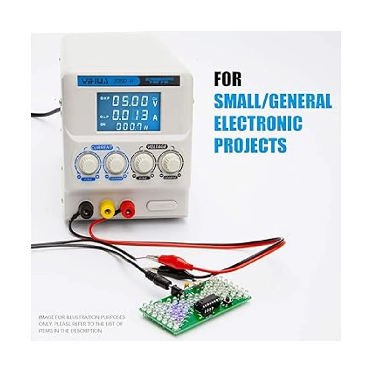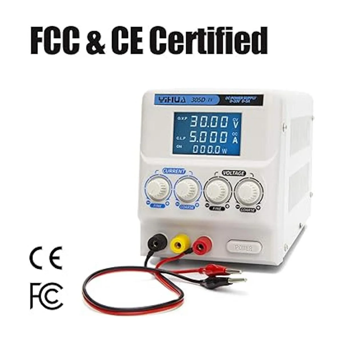 YIHUA Fuente de alimentación de laboratorio de CC variable regulada 305DIV de 05 A, 030 V, de bajo ruido, fuente de alimentación con clips de cocodrilo, alta precisión para ID, laboratorios, laptops, reparación de teléfonos y bricolaje electrónico