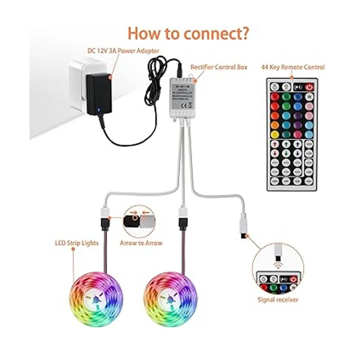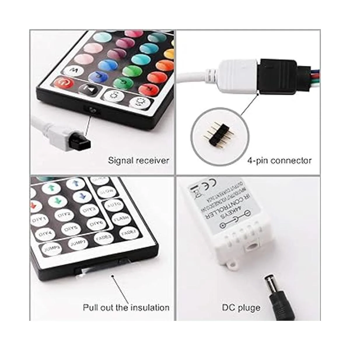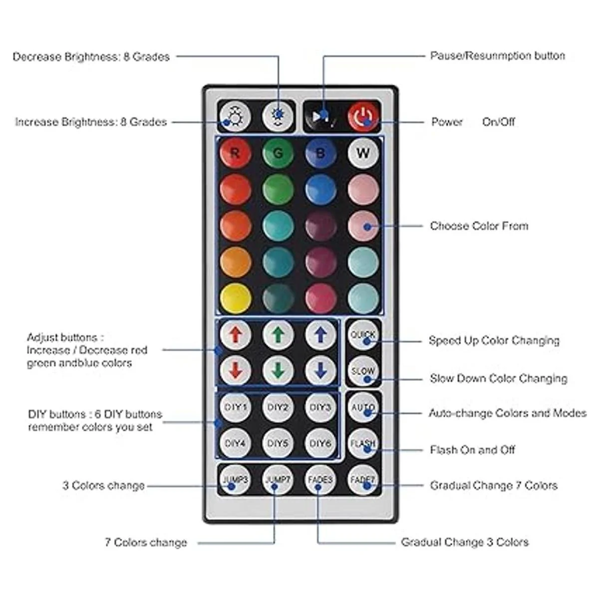 Yiliaw Control remoto IR de 44 teclas inalámbrico, caja de control rectificador, adaptador de fuente de alimentación CC de 12 V 3 A, para 2835 3528 5050 RGB luces de tira de luces LED de cinta flexible