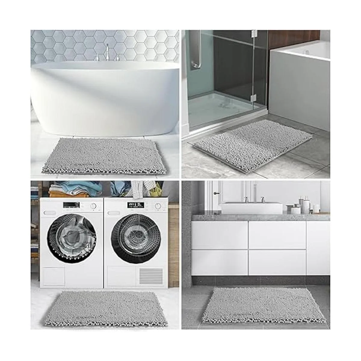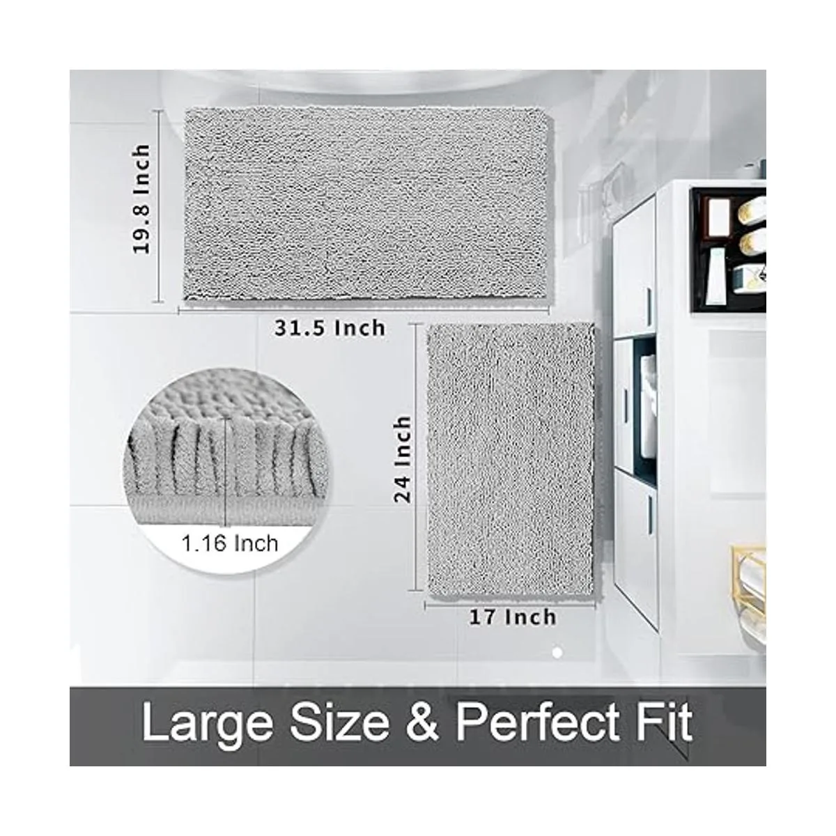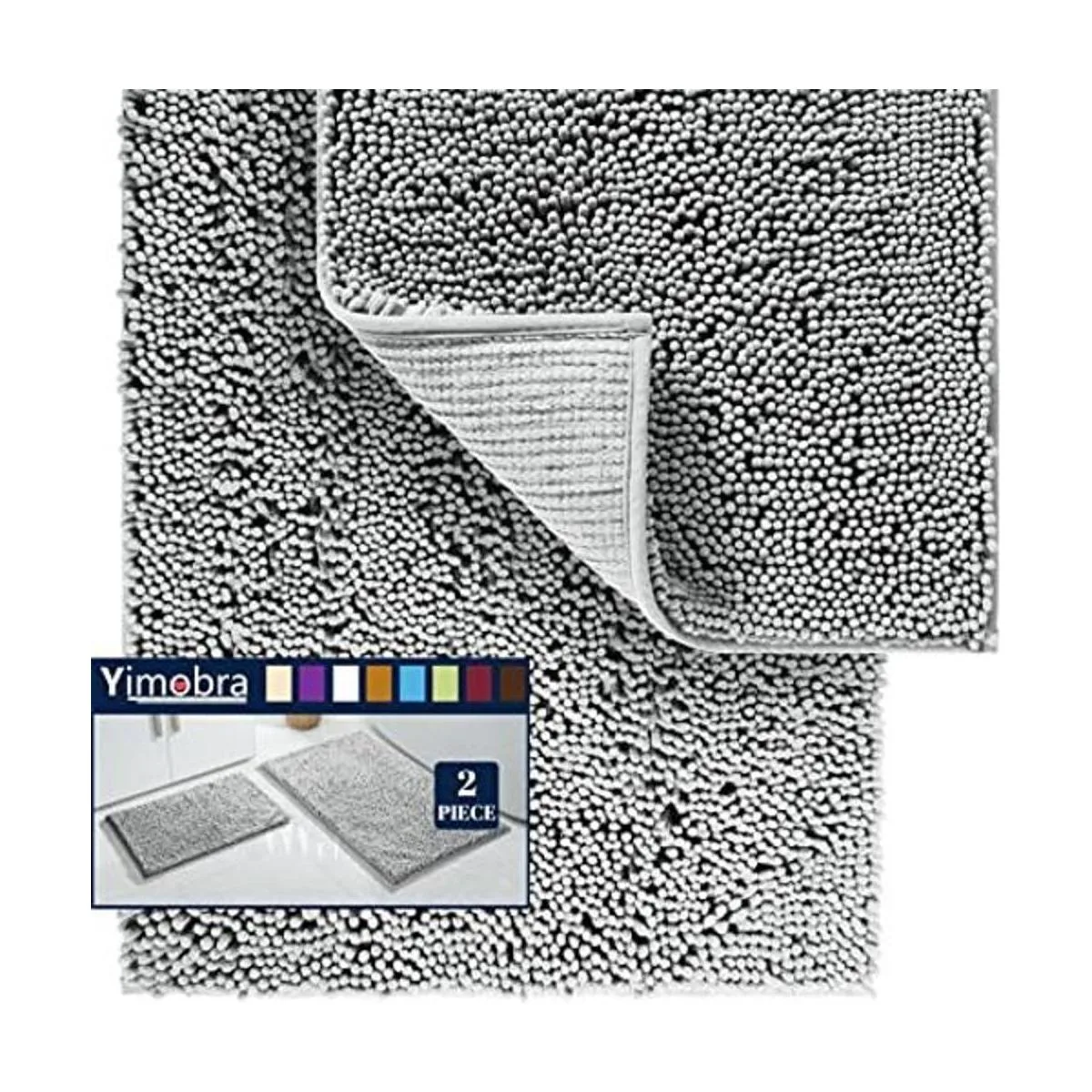 Yimobra Juego de 2 alfombras de baño de felpilla de lujo, tapete de baño de felpa suave y absorbente, antideslizante, lavable 31.5 x 19.8 24 x 17 pulgadas, gris