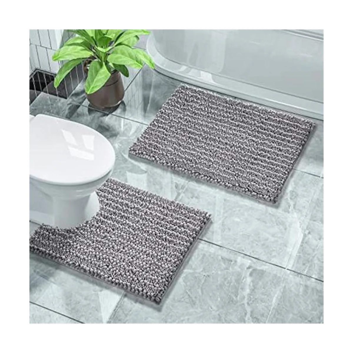 Yimobra Juego de 2 alfombras de inodoro y tapetes de baño, de felpilla esponjosa, de lujo, suave, cómoda, antideslizante, lavable a máquina, 24 x 17 24.4 x 20.4 pulgadas, gris claro