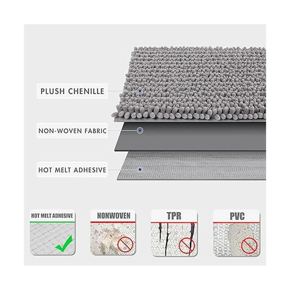 Esponja y suave : la alfombra de baño Yimobra es un producto que combina exquisita artesanía y materiales de alta calidad, con una chenilla suave y esponjosa en la parte delantera, que envuelve tus pies. La parte posterior está hecha de un material antideslizante único, que no hará que la parte inferior antideslizante de goma se agriete. Si necesitas una alfombrilla de baño de chenilla gruesa de buena calidad, esto es lo que quieres