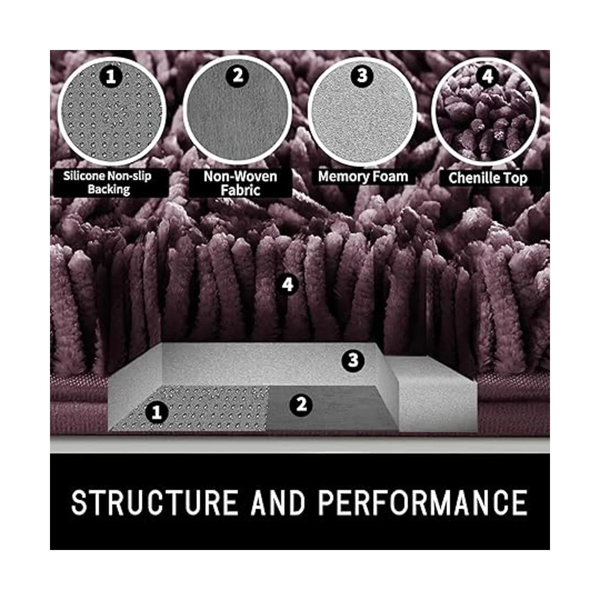 Súper suave y esponjoso: los juegos de alfombras de baño de chenilla Yimobra tienen un pelo alto y brillante que no solo se ve lujoso, sino que también se siente como si fuera también. Alfombras de baño esponjosas de textura pesada tan acogedoras y cómodas, espera la sorpresa, cuando salgas del baño o la ducha tus pies se sentirán secos y cómodos tan pronto como pises