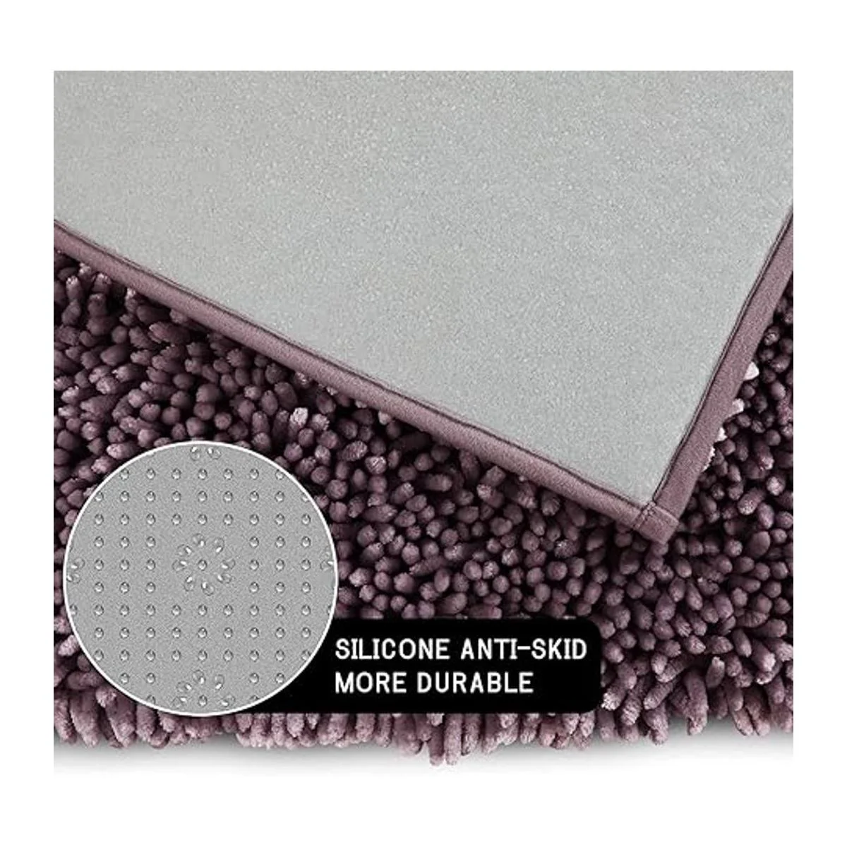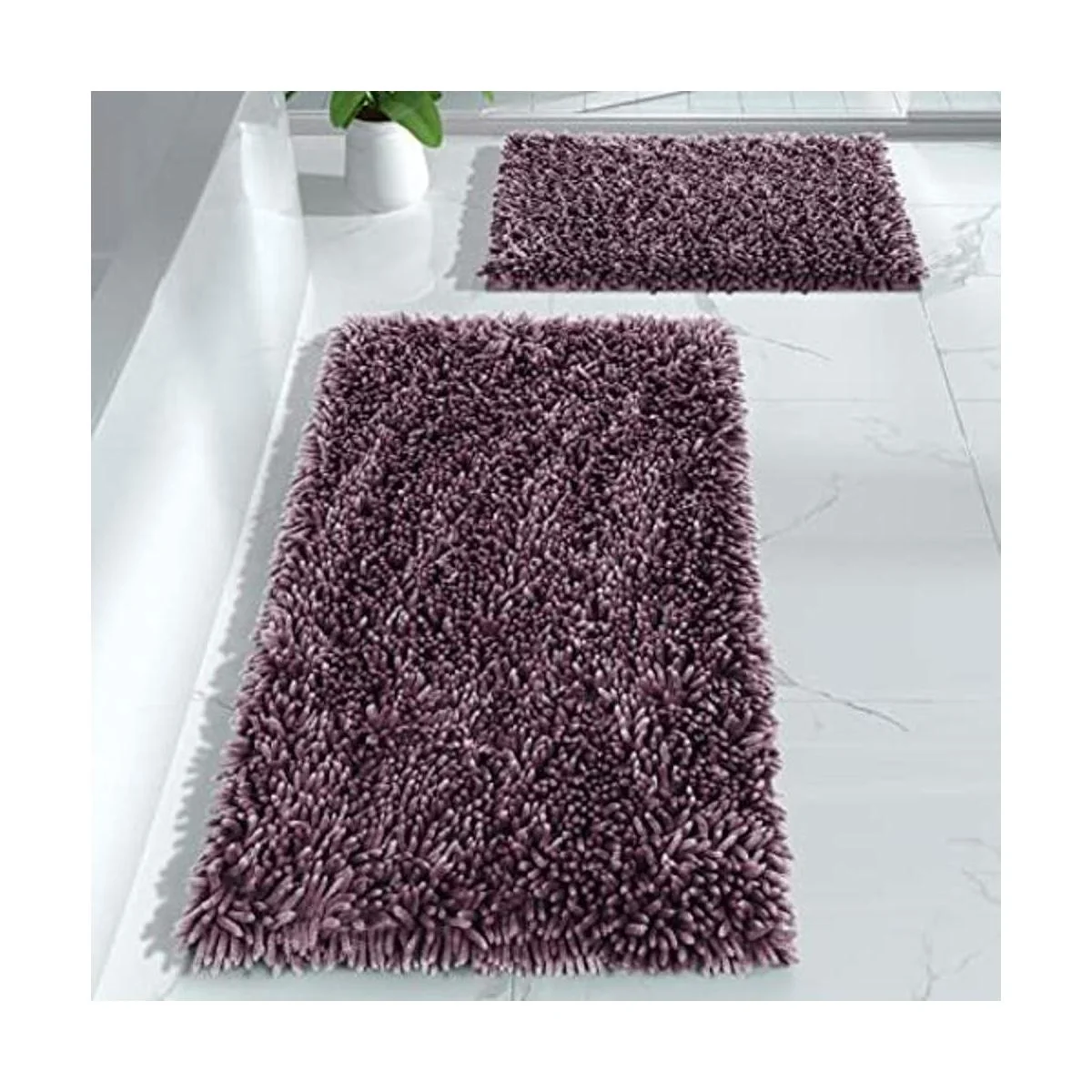 Yimobra Juego de alfombras de baño de 2 piezas, alfombras de baño antideslizantes y peludas para contorno de suelo de baño, alfombra de baño de felpa ultra absorbente para ducha, lavar a máquina, 31.5 x 19.8 24 x 17 pulgadas, morado oscuro