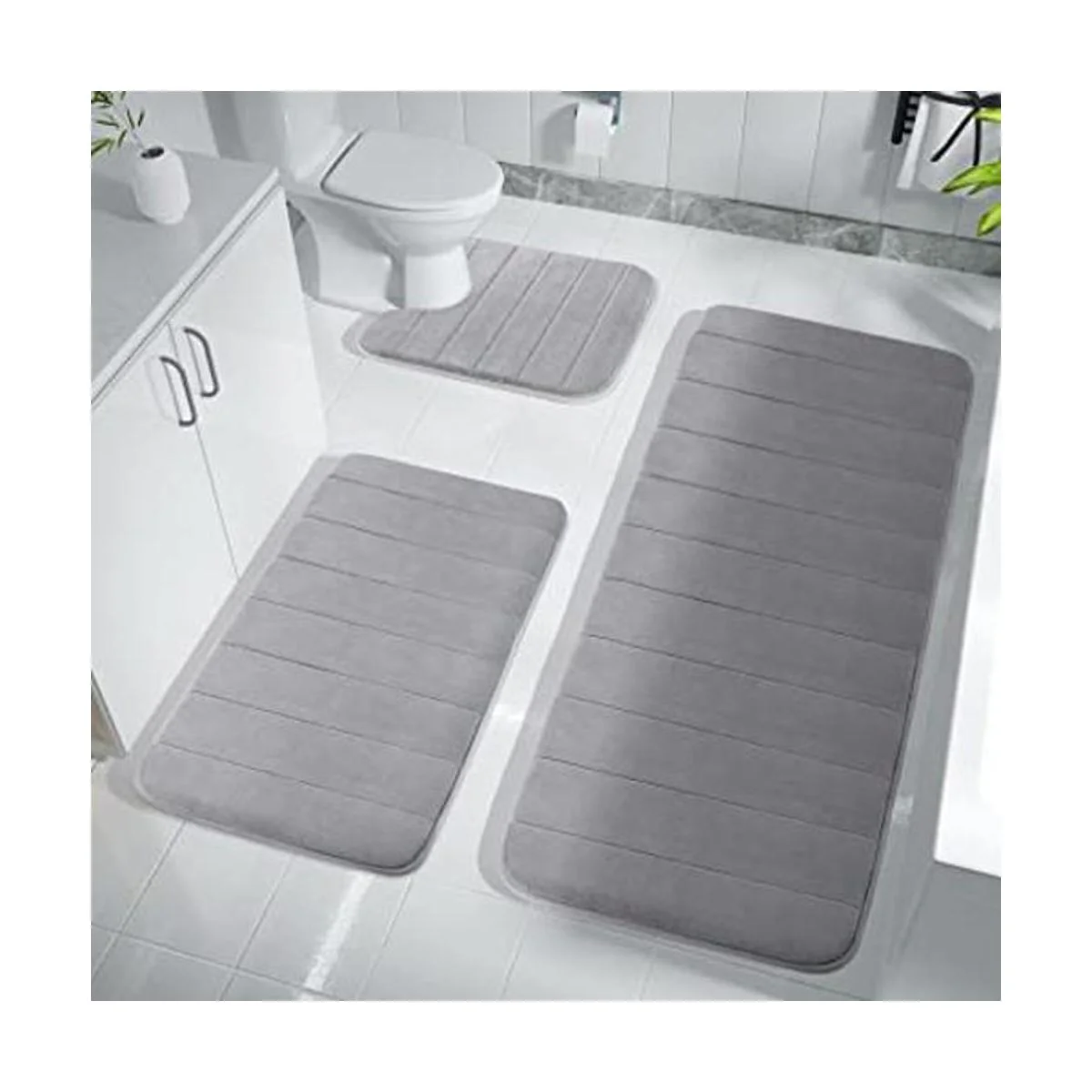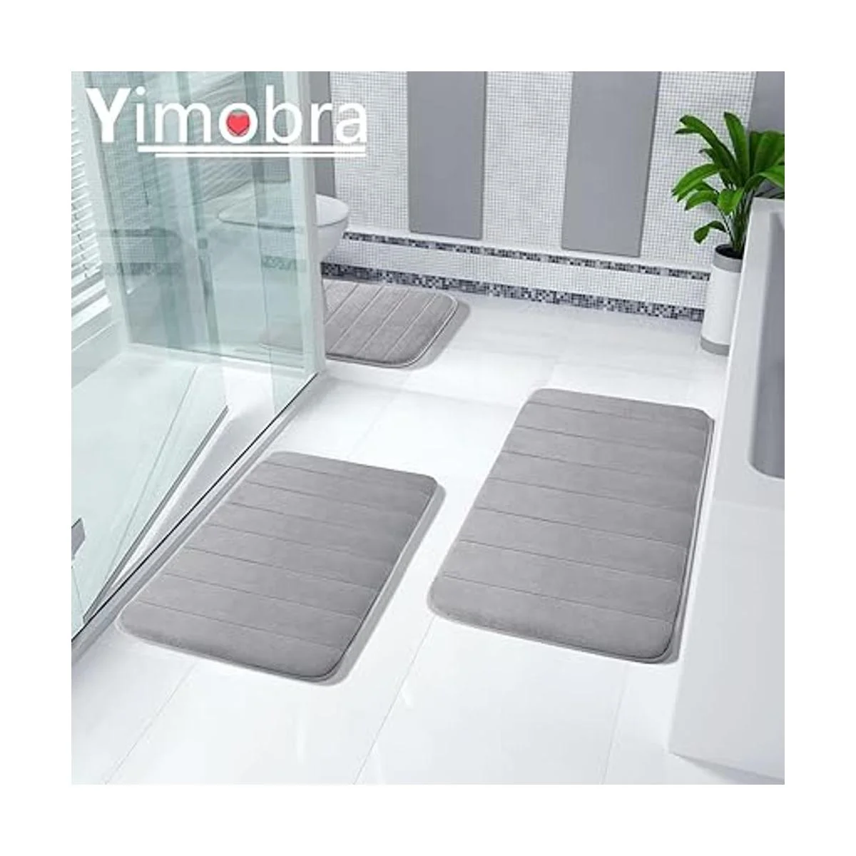 Yimobra Memory Foam Bath Mat Set, Bathroom Rugs for 3 Pieces, Toilet Mats, Soft Comfortable, Water Absorption, NonSlip, Thick, Machine Washable, Easier to Dry for Floor Mats, Gray