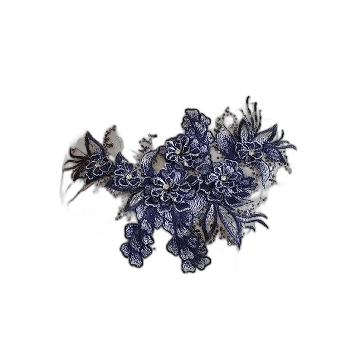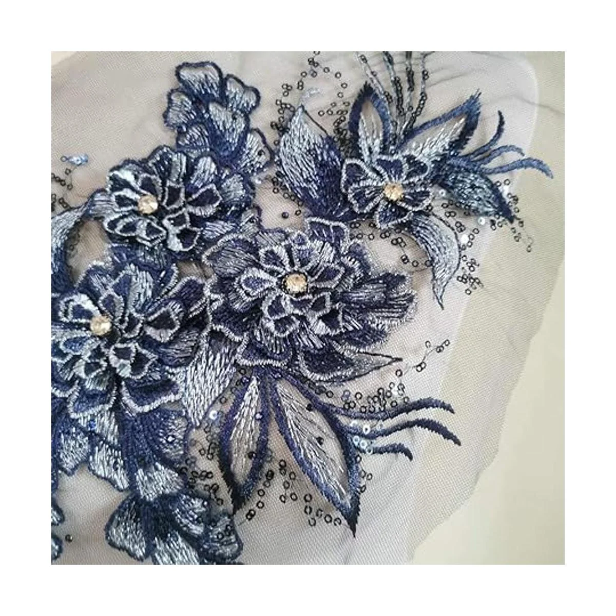 yinqinUSP Bordado patrón tridimensional lentejuelas uñas perlas agua taladro tela palillo patrón de encaje hecho a mano DIY decoración accesorios azul marino