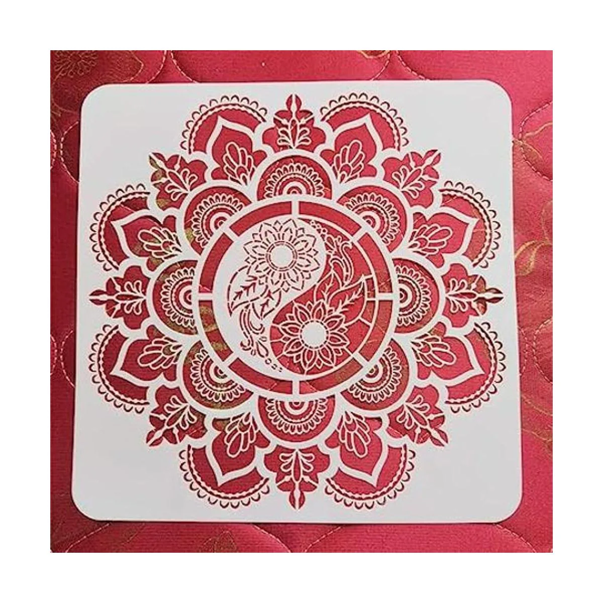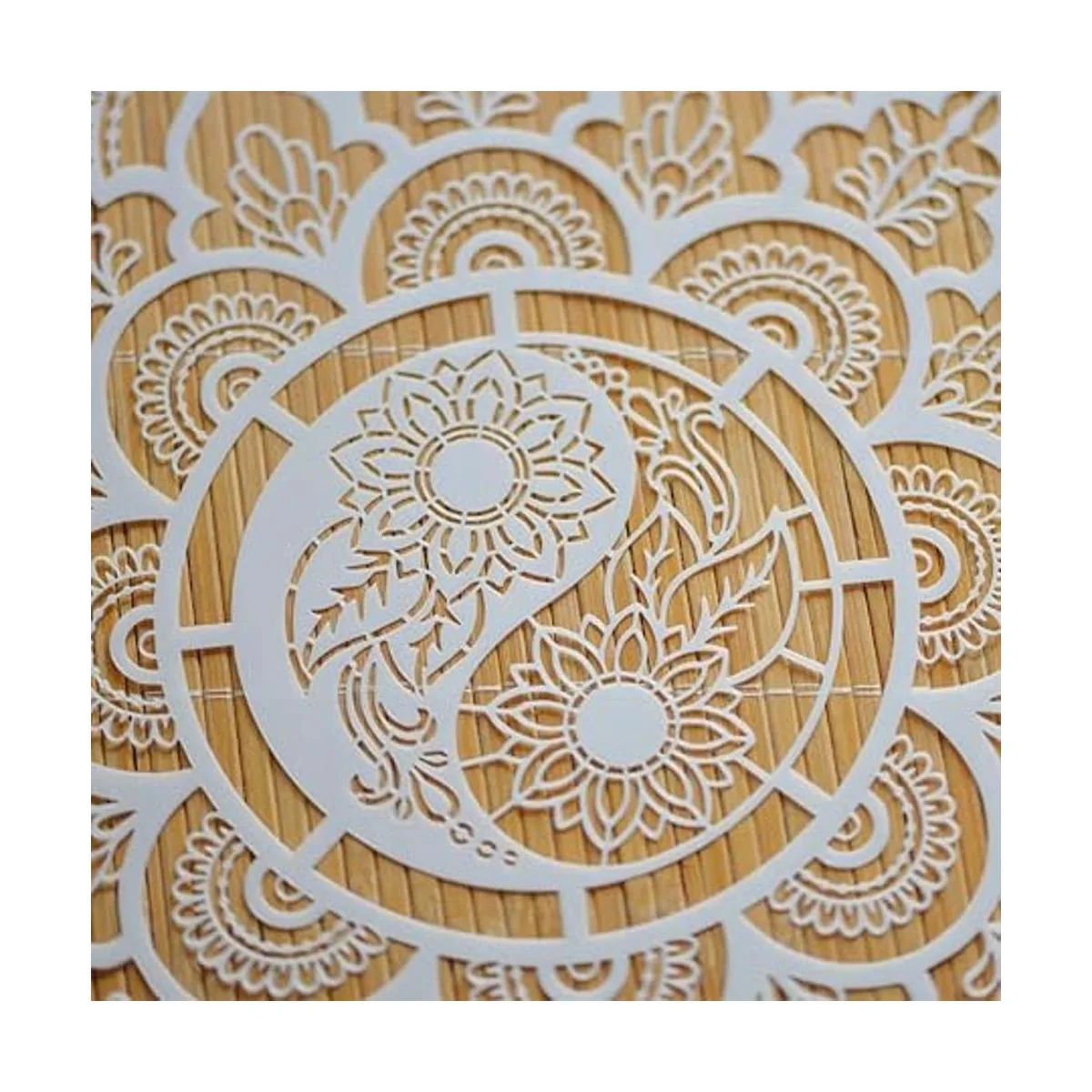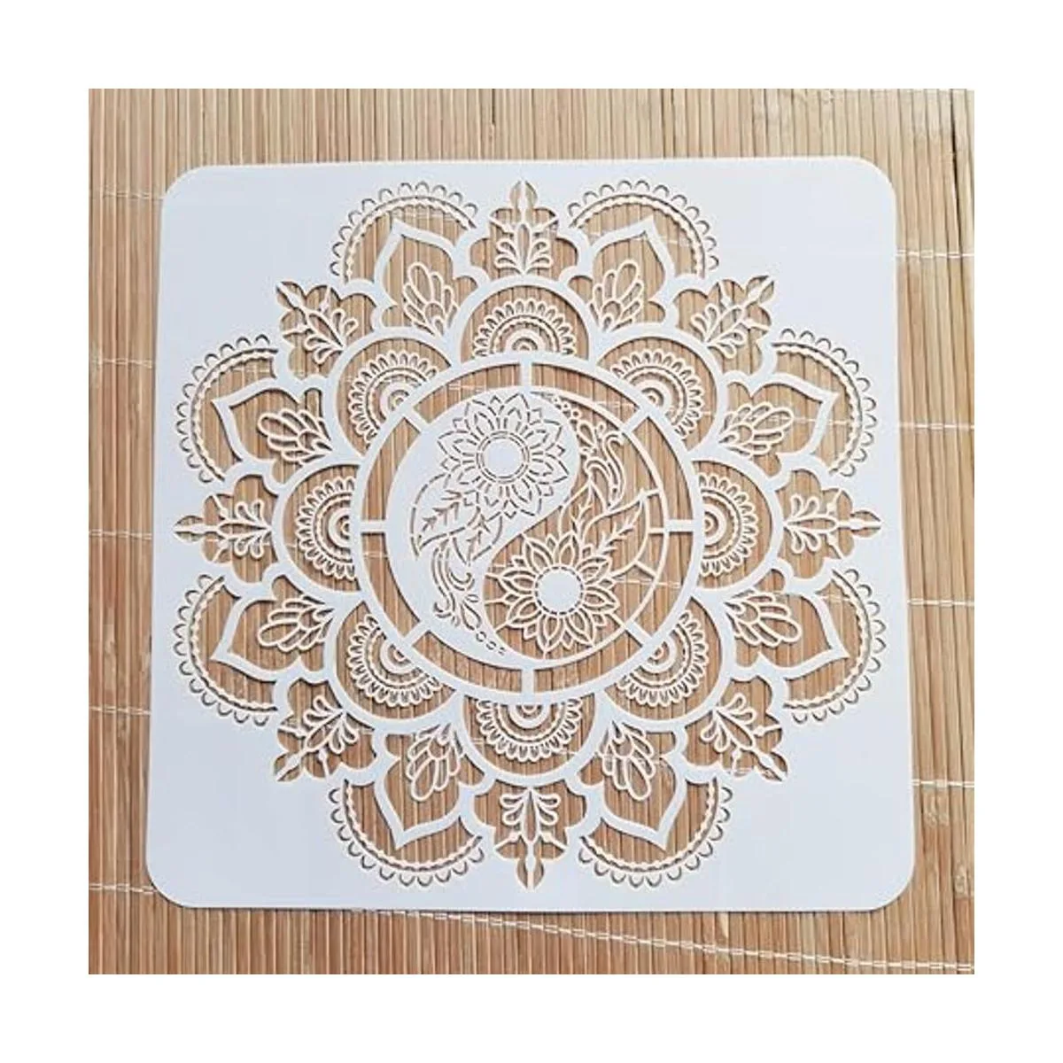 Yinyang Plantillas de mandala reutilizables para manualidades, 12 x 12 pulgadas, para muebles, manualidades, álbumes de recortes de madera, pintura artística, plantilla floral de 0.012 in 0.4 fl oz