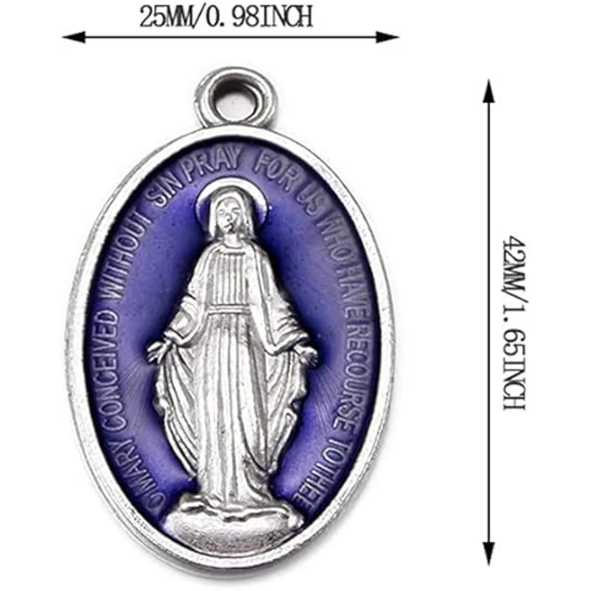 Diseño único: la medalla milagrosa fue diseñada en un delicado y noble azul. Medalla milagrosa de dos caras, la parte delantera representa a María Inmaculada, sus manos abiertas, llenas de luz; ella es la mensajera del Dios que nos ama y que nunca deja de venir a nuestra ayuda. St. El otro lado tiene una cruz y la letra M.