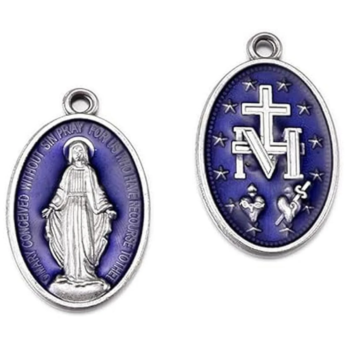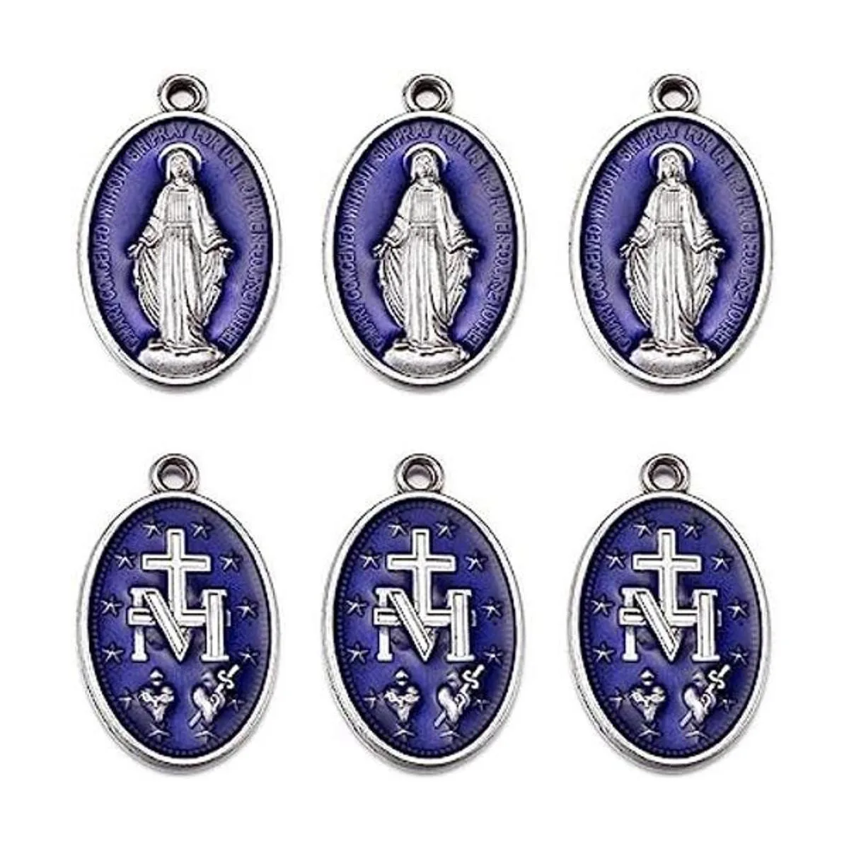 YionZian 10 dijes de medalla milagrosa de Jesús católico Nuestra Señora Virgen María, devocional, dijes ovalados de esmalte azul para bricolaje, regalos religiosos, fabricación de joyas, collares, llaveros y bolsas, Zinc, Esmalte