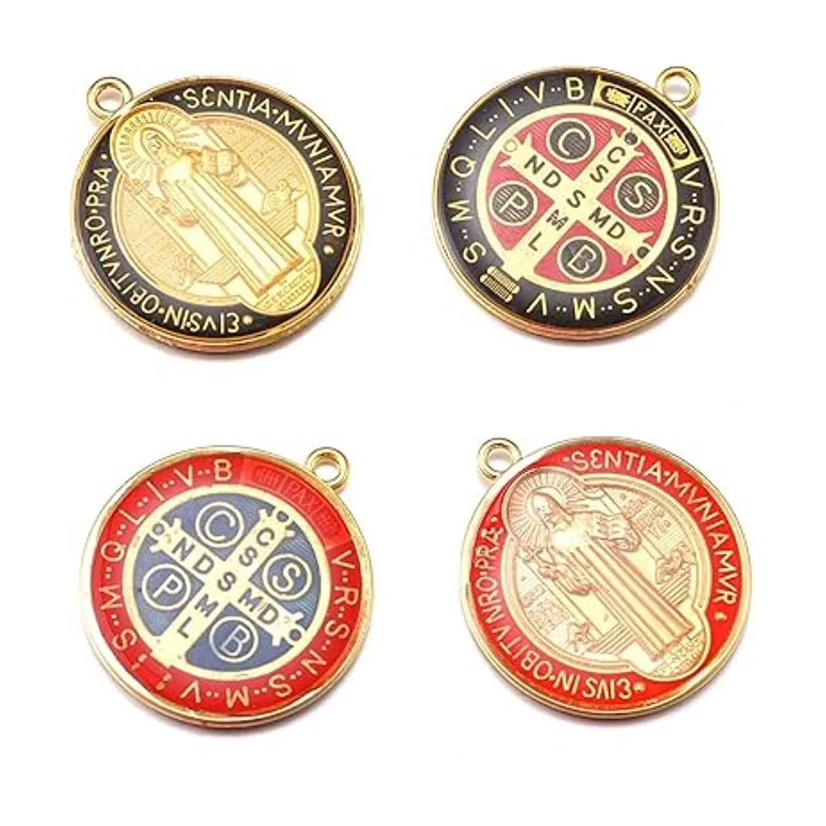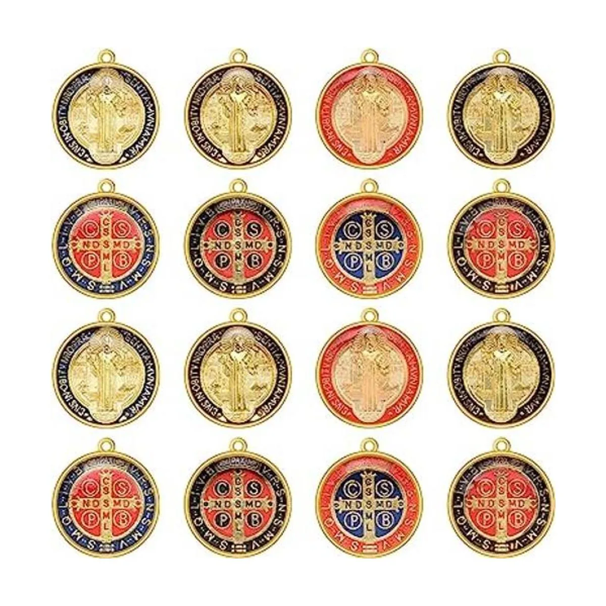 YionZian 12 piezas de aleación mixta esmaltada de San Benito Jesús, cruz milagrosa, medalla devocional cristiana católica religiosa, regalos para hacer joyas, colgantes, collares, llaveros, bolsas, manualidades, Zinc, Esmalte