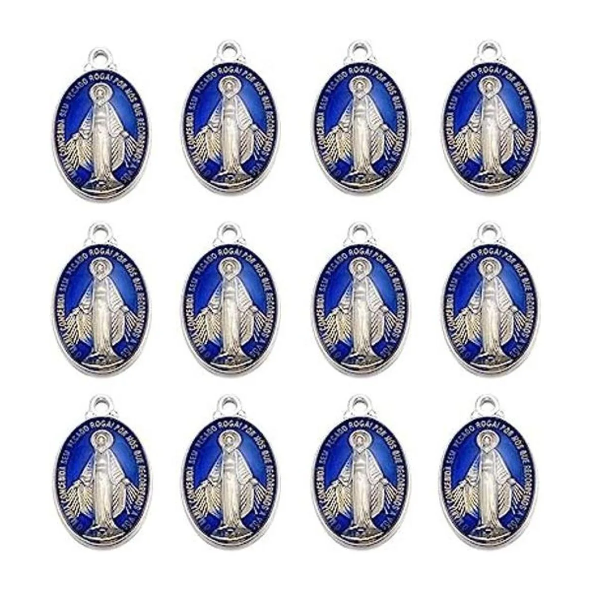 YionZian 40 piezas ovaladas de crucifijo esmaltado azul, regalos religiosos, dijes católicos de Jesús católico, medalla milagrosa, colgante de devoción para bricolaje, collares, pulseras, joyería esmalte azul ovalado, Zinc, Aleación.