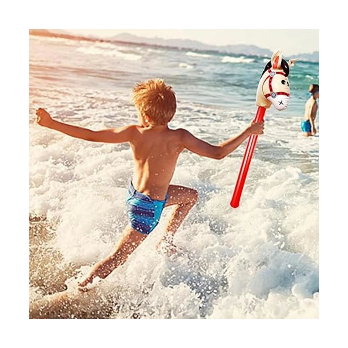 Suministros para fiestas: Estás listo para ir a dar un paseo Utiliza este caballo inflable como decoración o como parte de un juego u carrera de obstáculos. El caballo inflable es un gran juguete al aire libre, accesorio de fiesta occidental o regalo para aquellos que aman los caballos.
