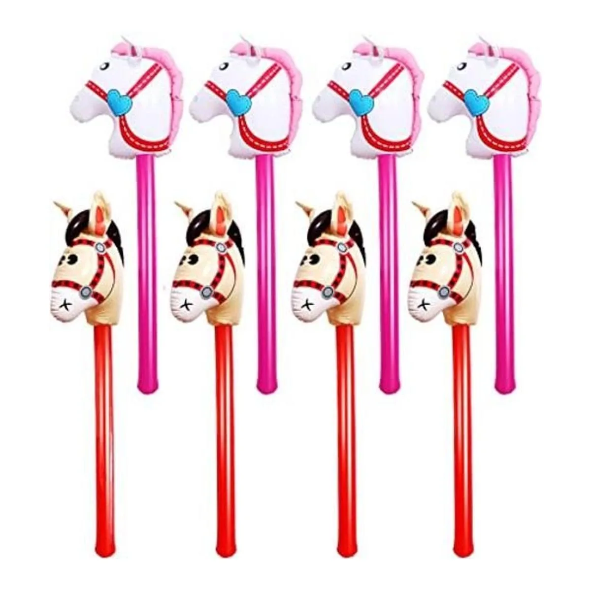 Yiphates 8 piezas de 40 pulgadas de caballo inflable de caballo colorido palo cabeza palo globo caballo caballo suministros para fiesta de cumpleaños, palo de poni para decoraciones de fiesta temática de caballos de Navidad, palo de disfraces