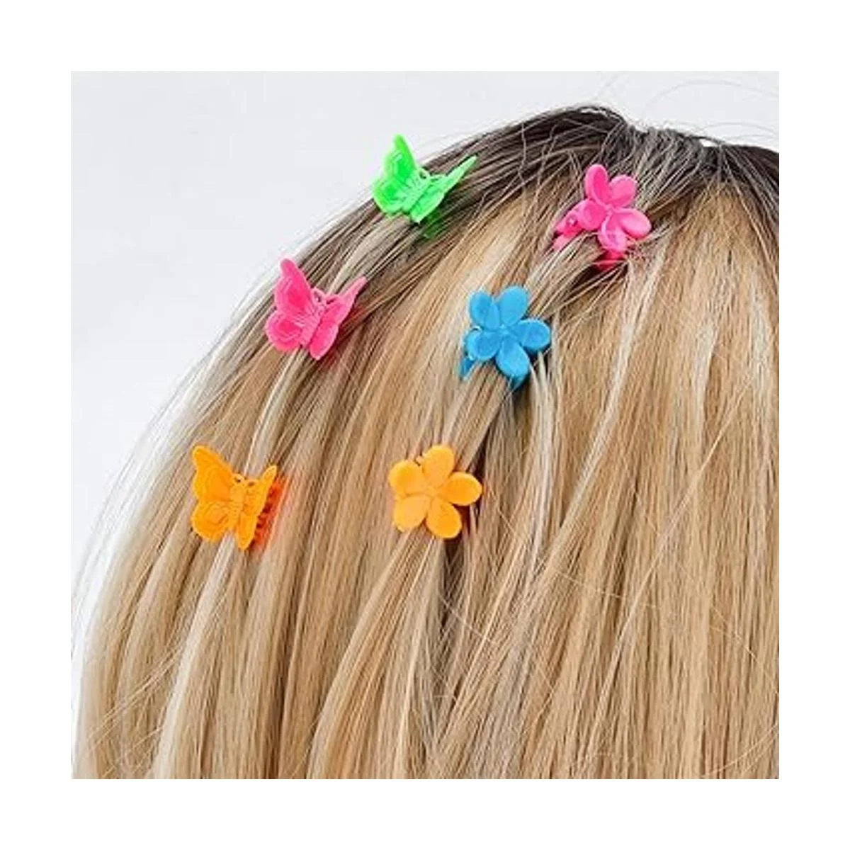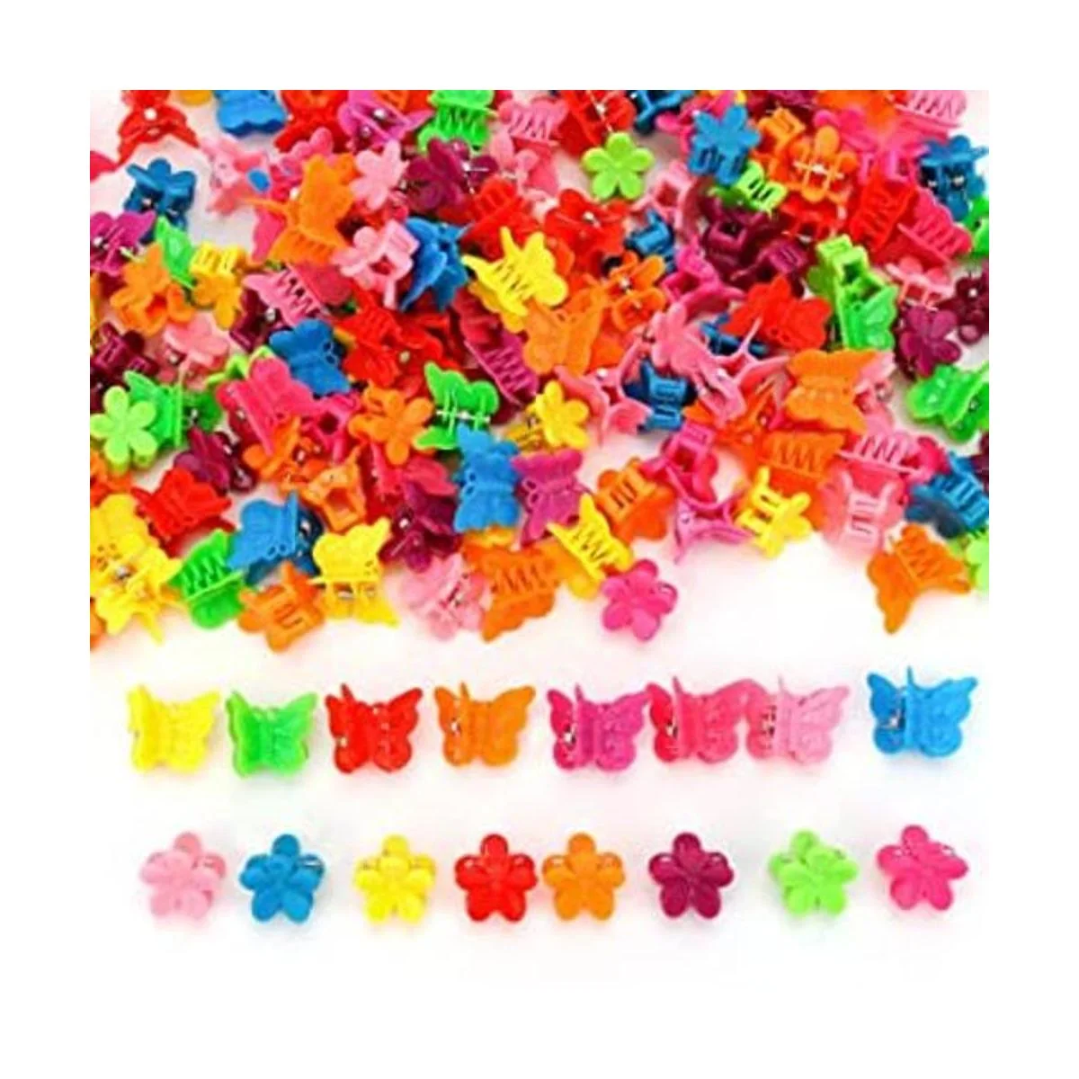 YISSION 200 mini pinzas para el cabello de flores, pinzas para el cabello de mariposa, pinzas pequeñas para el cabello de los años 90, accesorios para el cabello para niñas, mujeres, regalos de fiesta escolar, colores surtidos