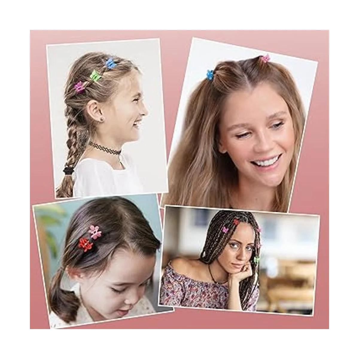 Paquete: 200 pinzas pequeñas para el pelo para niñas y mujeres, 2 bonitos diseños clips de mariposa para el cabello, clips de pelo de flores, 100 piezas de cada diseño, color aleatorio.