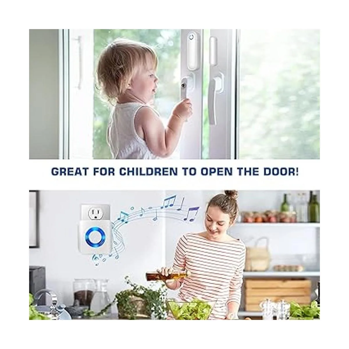 Mantén la seguridad de tu hogar/oficina: el timbre inalámbrico con sensor de puerta ofrece una generosa área de detección de casi 260 pies. Puedes escuchar el timbre mientras los visitantes o invitados llegan a tu hogar, tienda, oficina, etc. Suena para notificarte a alguien que entra o alertar a tu intruso tratando de entrar en tu casa. O recuerda cuando tus hijos/pacientes con demencia ancianos abren la puerta/ventana y se escapan.