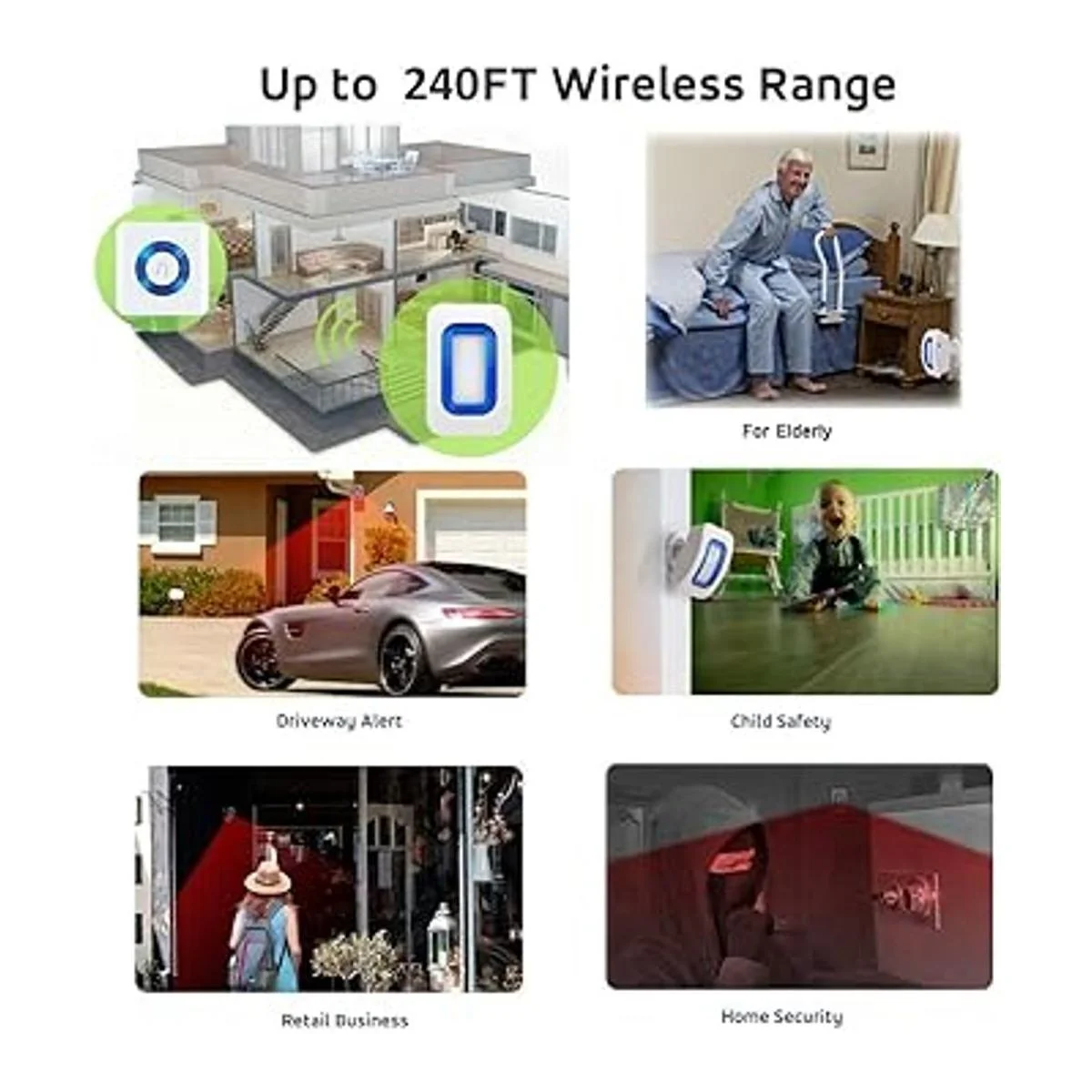 El sensor de movimiento inalámbrico YisTech incluye 1 sensor de movimiento y 2 receptores enchufables. El sensor de movimiento alertará cuando la gente entre o se vaya. salo como alerta de entrada para el hogar/negocios. También se puede utilizar en la puerta delantera, puerta trasera, buzón, garaje y entrada. Este sensor de movimiento no es impermeable. Si se utiliza en exteriores, úsalo en un porche cubierto u otro lugar donde no se moje.