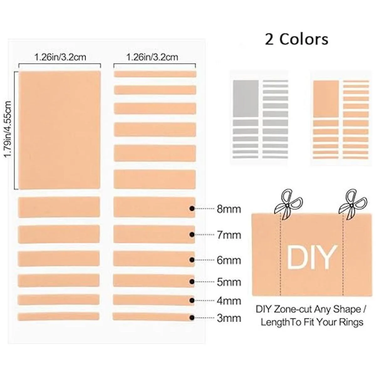 Fácil de usar: mide el ancho de tu anillo y encuentra el tamaño correcto, envuélvelo o pégalo alrededor de tu anillo, luego recorta el exceso. Llévalo en el dedo y siente que el tamaño es correcto.