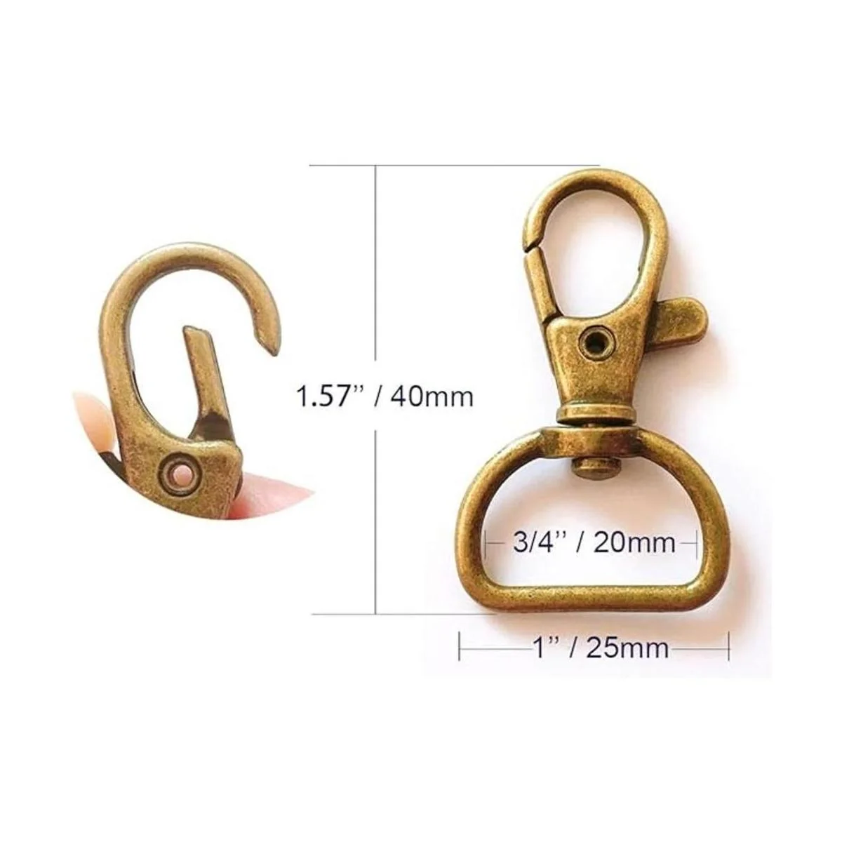 YIXISBest 20 ganchos giratorios de metal de latón antiguo de 360° con cierre de pinza de langosta, anillo ancho en D de 3/4 pulgadas, ganchos de llavero de gran tamaño, 0.787 in en ID, 1.575 in de largo, (3/4 pulgadas, latón antiguo)