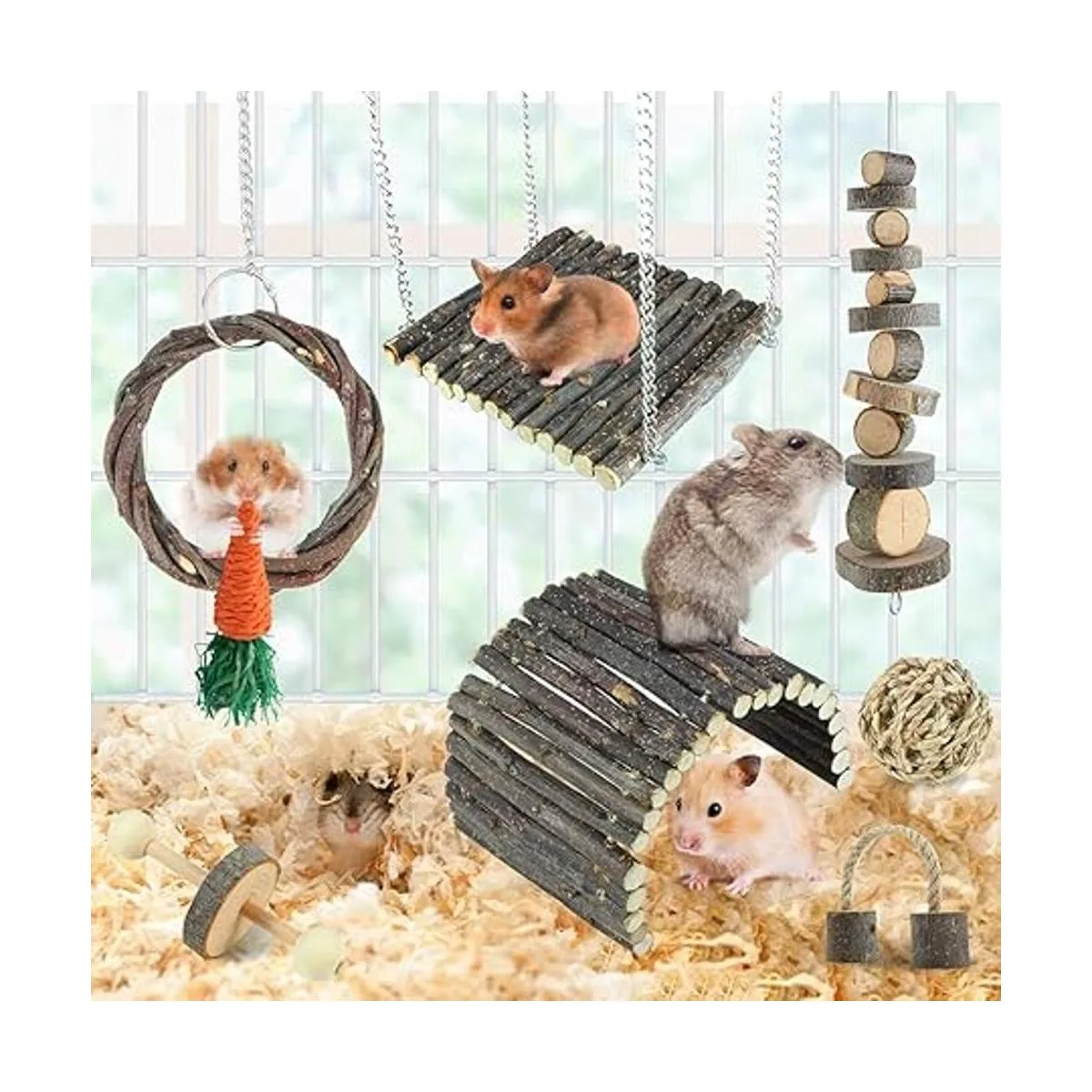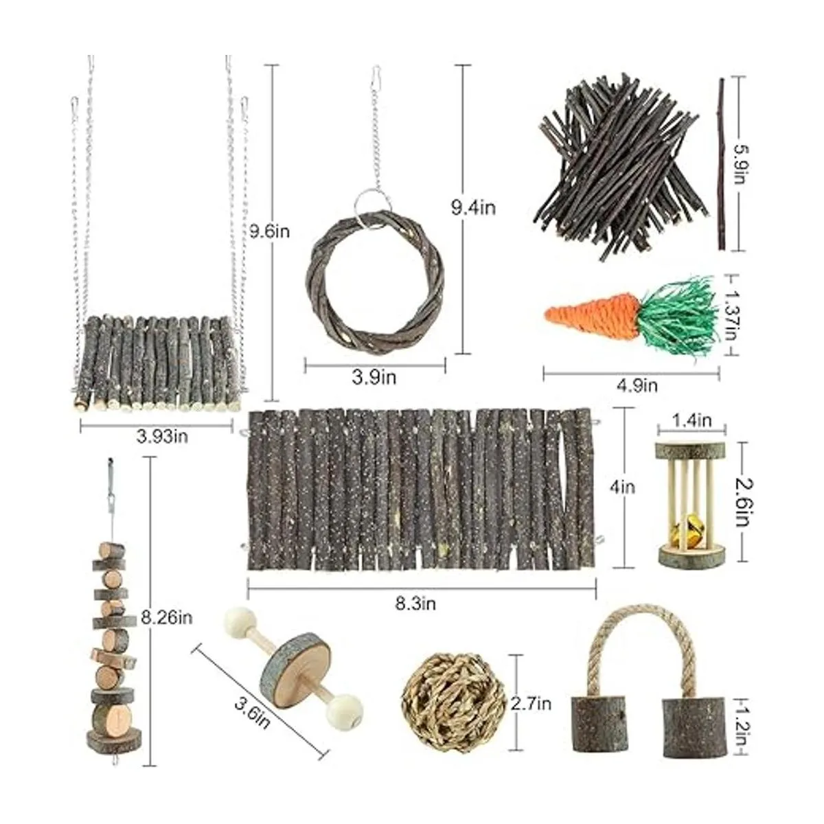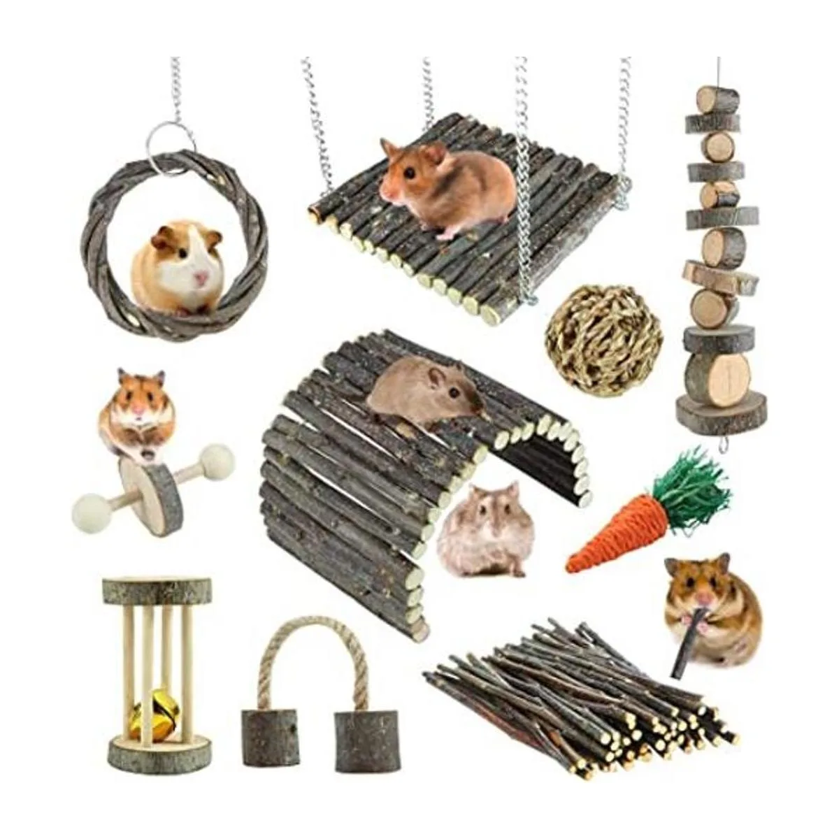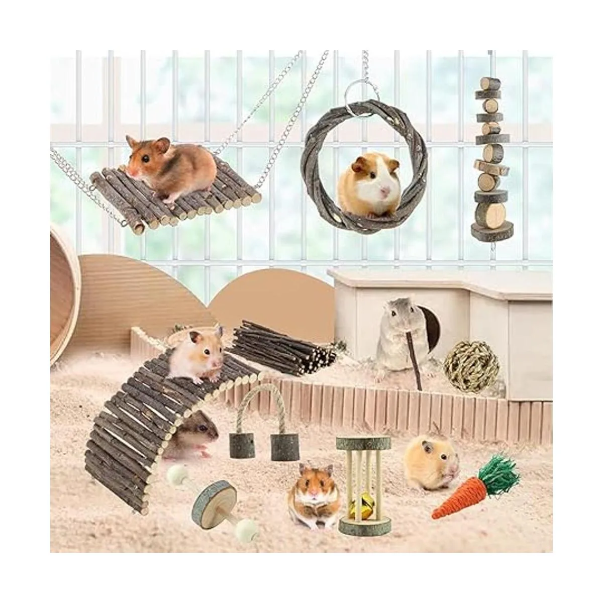 Regalo perfecto: el kit de accesorios para hámster es adecuado para mascotas pequeñas de roedores, como cobayas, chinchillas, hámsters, ratas, ratones, conejos y jerbos, ayudándoles a moler sus dientes en constante crecimiento. Una buena manera de evitar que tus mascotas roedores mastiquen la jaula y otros muebles. Accesorios perfectos para jaula de ratas para tu querida mascota.