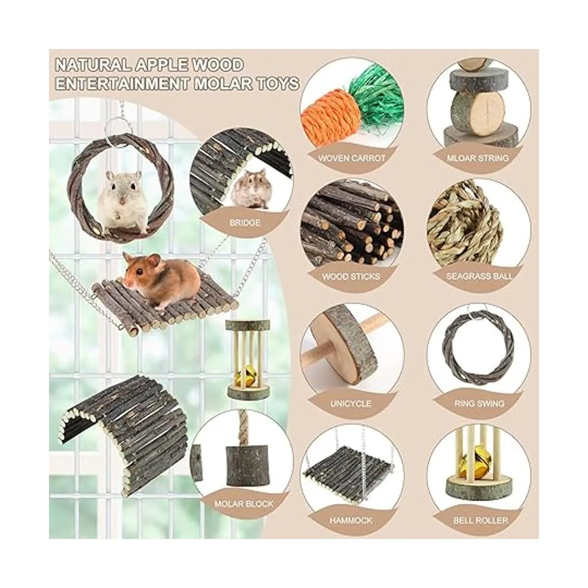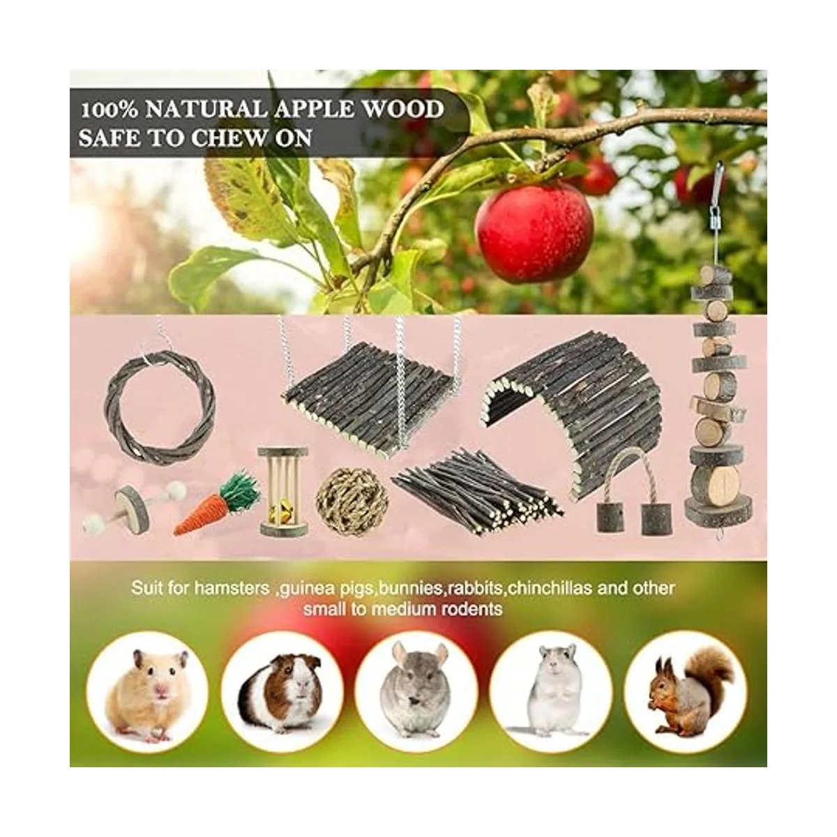 Lo que obtienes: los juguetes para hámster de madera de manzana YIXUND incluyen 1 puente de madera de manzana flexible y con forma fácil como una escalera de escalada, divisor de área de arena, túnel u otros juguetes de puente, 1 hamaca de madera de manzana, 1 cuerda molar de madera de manzana, 1 monociciclo de madera de manzana, 1 rodillo de campana de madera de manzana, 1 bloque molar 1 timoty. Bola de hierba, 1 zanahoria tejida y palos de manzana de 1.76 oz. Juego de juguetes de actividad de hámster de madera de manzana con olor dulce único que puede atraer fácilmente a tus pequeños amigos de mascotas a jugar.