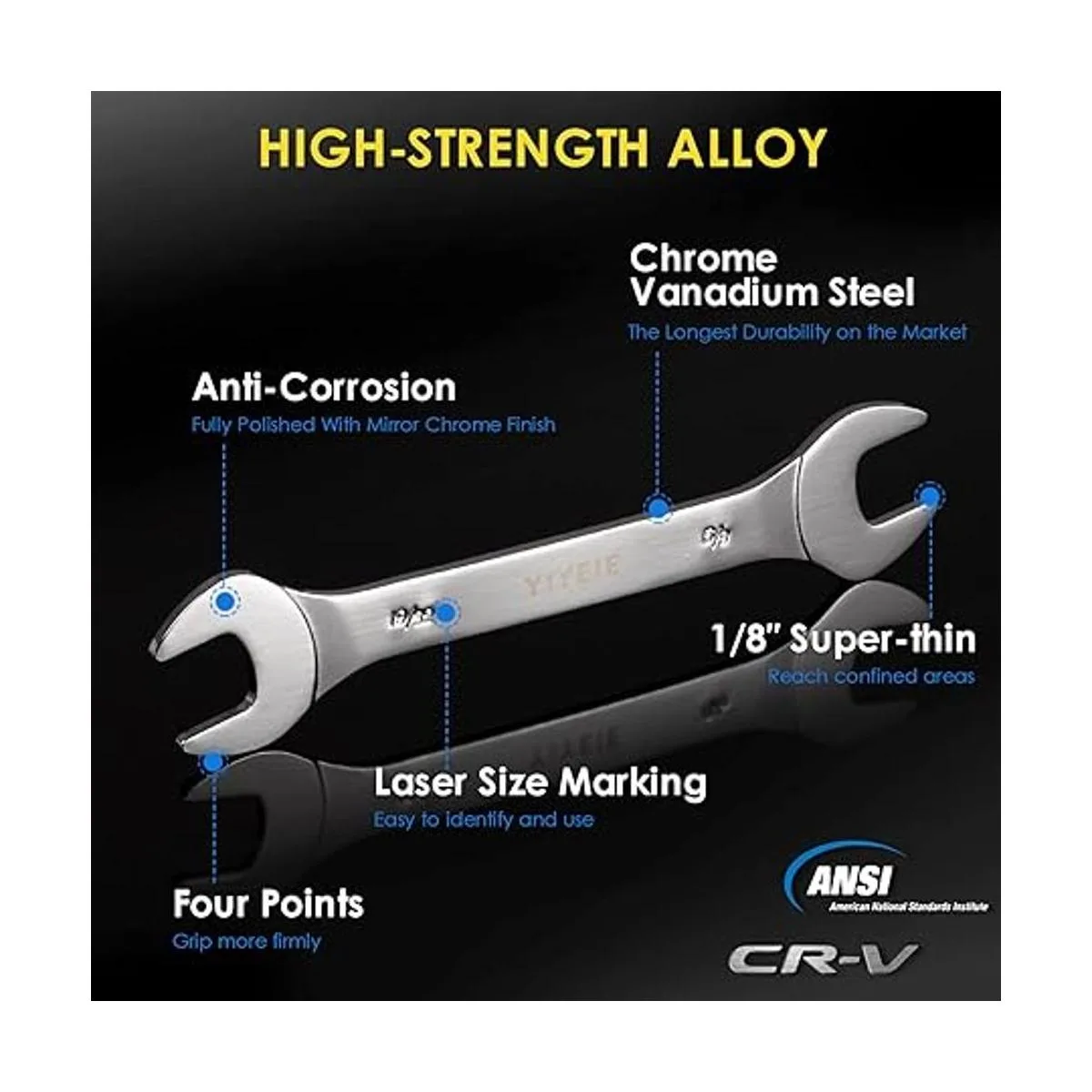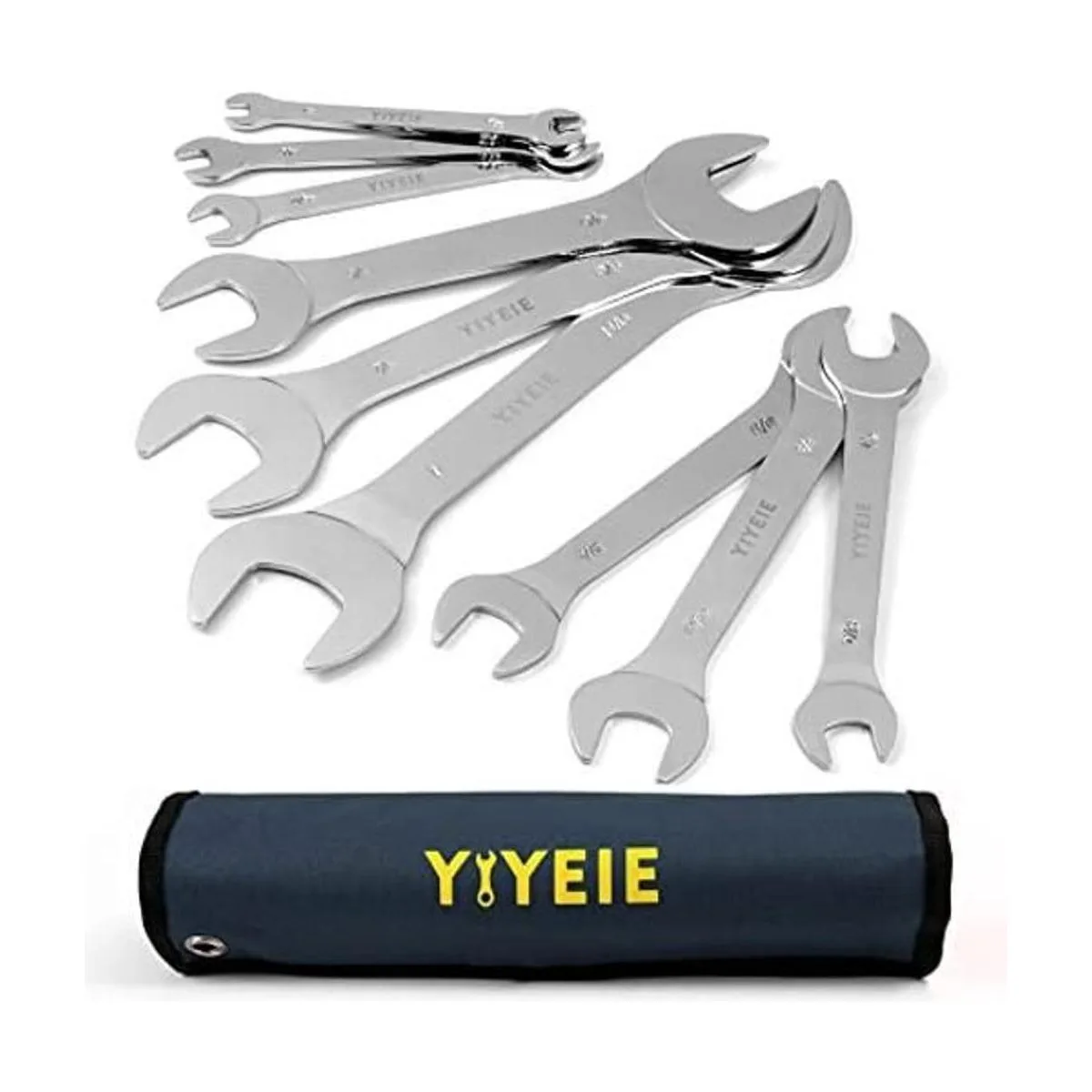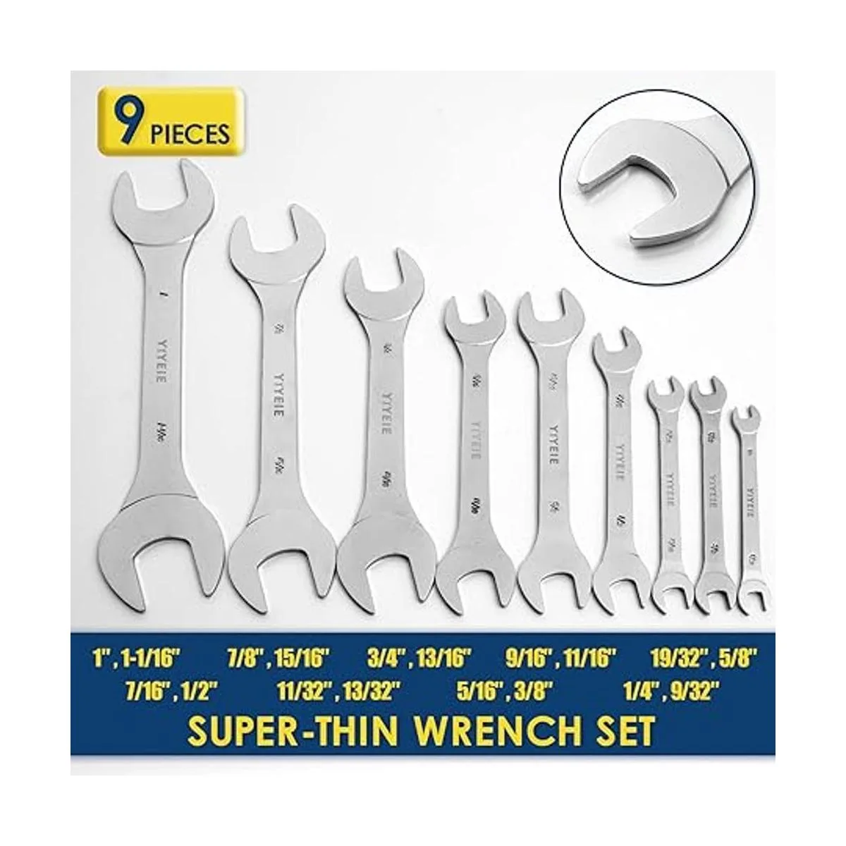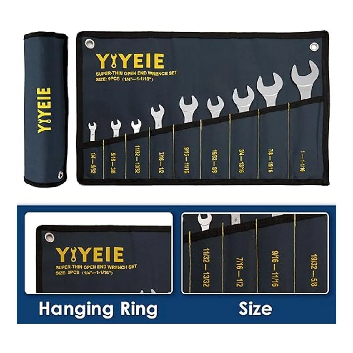 YIYEIE Juego de llaves de extremo abierto superfinas, 9 piezas SAE, 14 a 1116 pulgadas, acero al cromo vanadio con pulido de espejo, juego de llaves ultrafinas con bolsa rodante