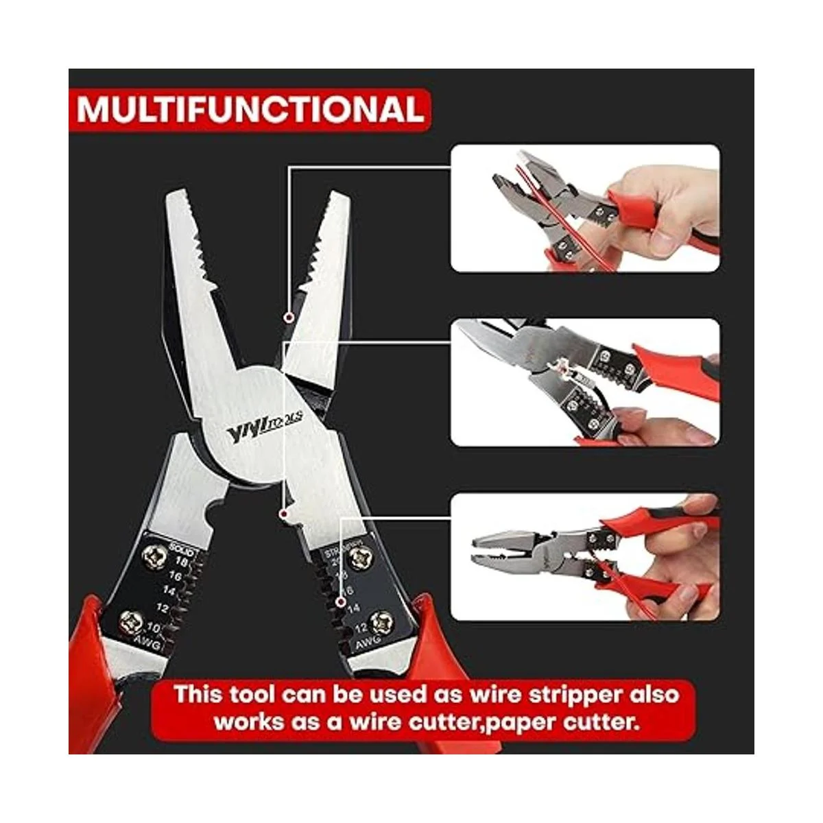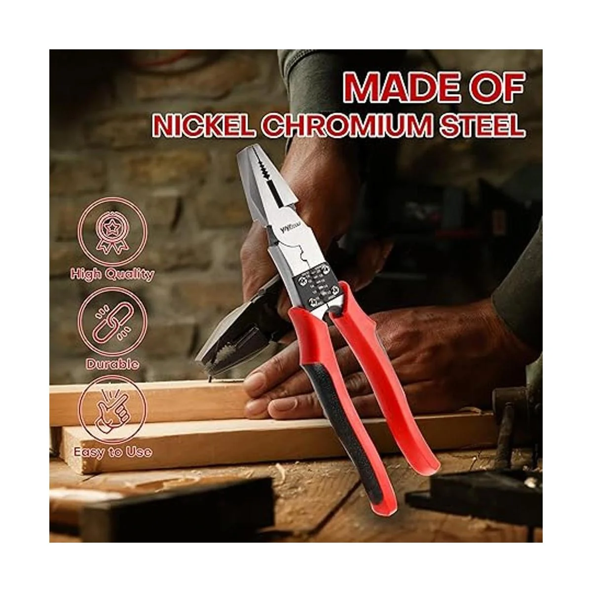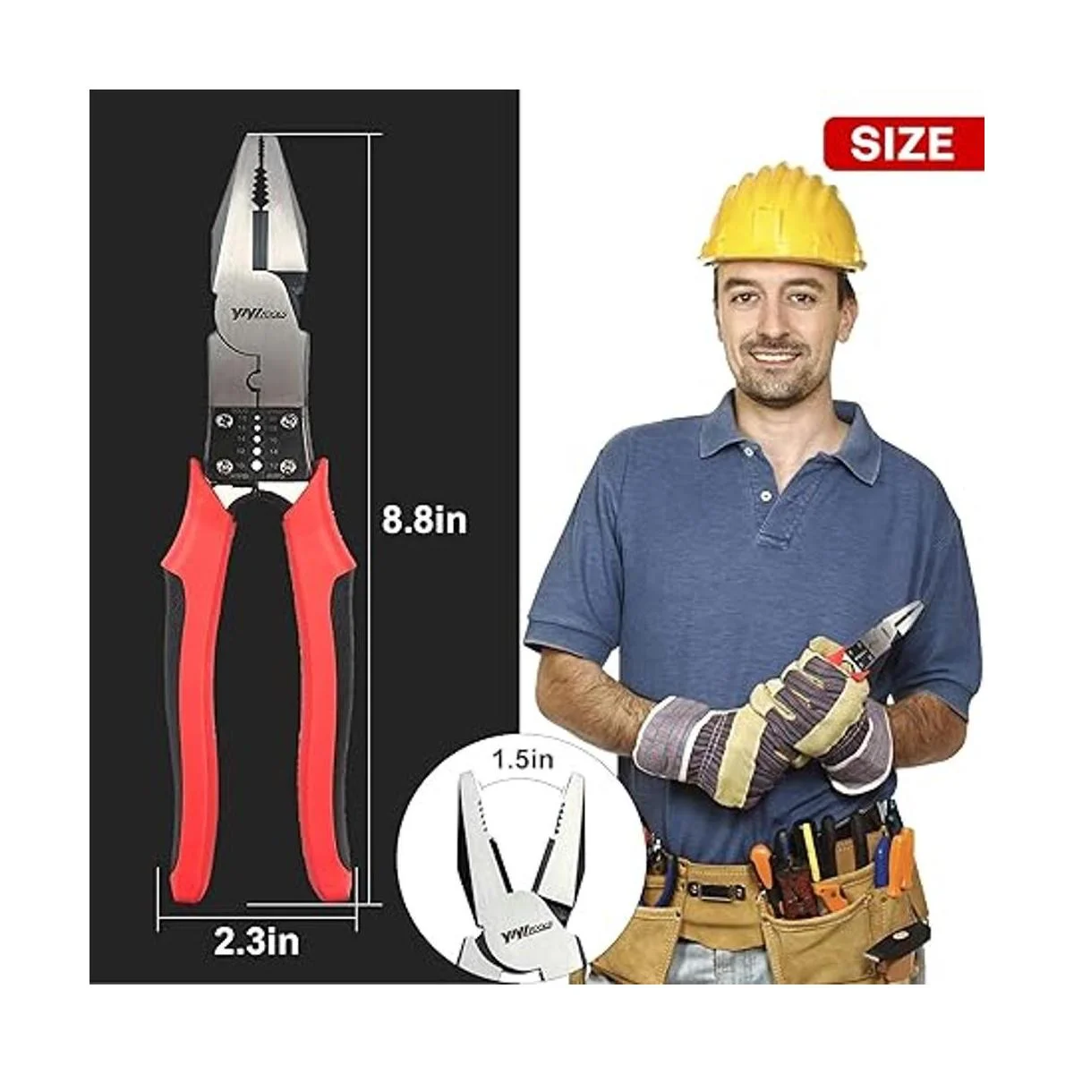 YIYITOOLS Alicates para operarios, alicates combinados con pelacables, crimpador, cortador, muy resistentes, gran función de apalancamiento al cortar, 8.5 pulgadas, HX1002