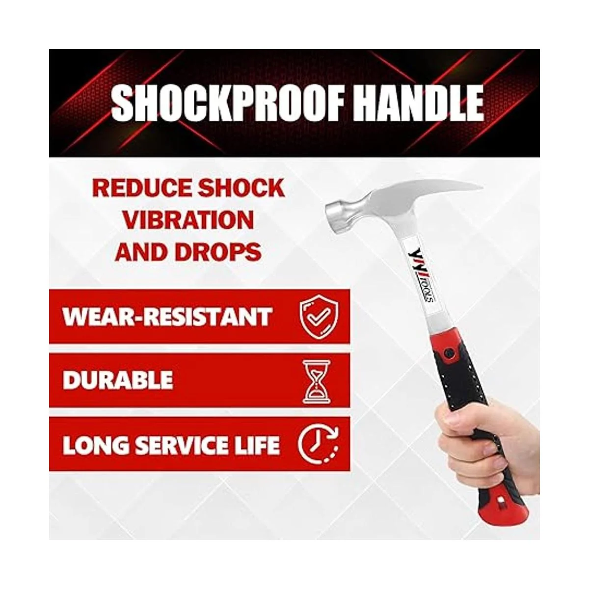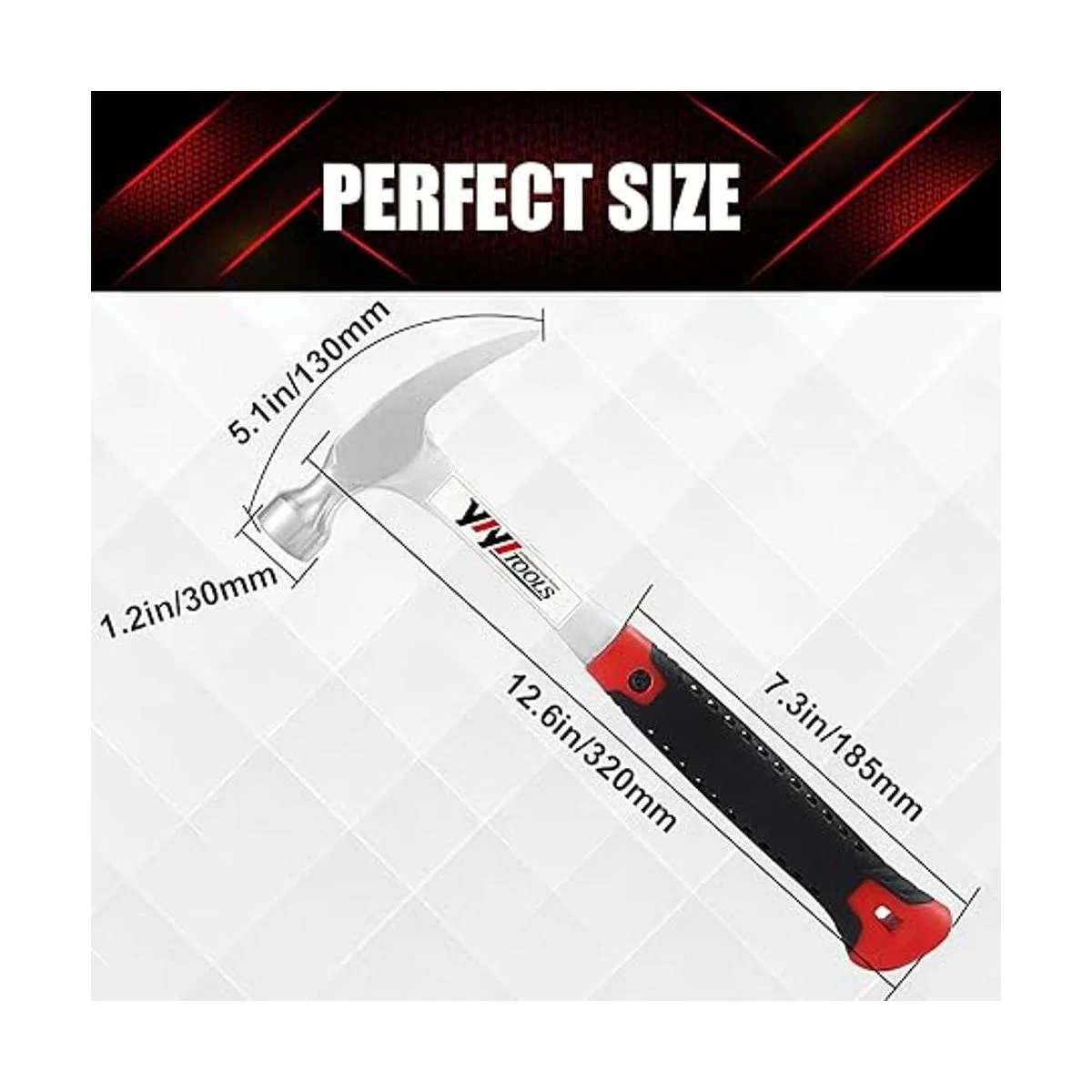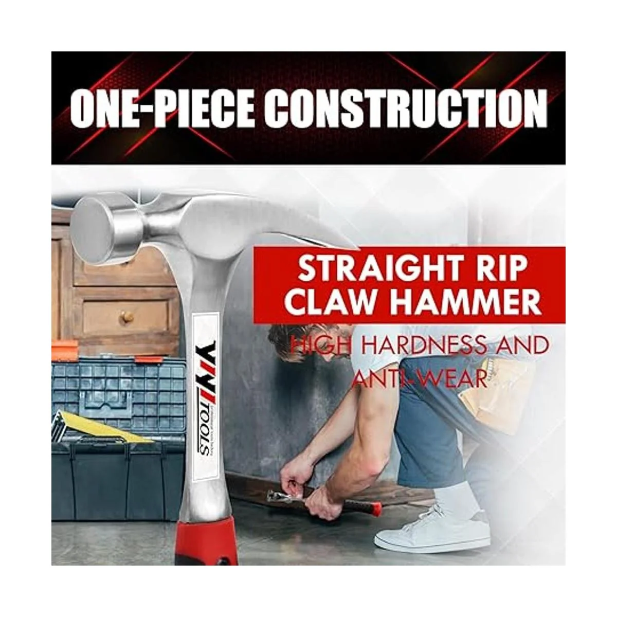 YIYITOOLS Martillo de garra recta 16 onzas. Estructura forjada de acero de una pieza. Cabeza de martillos brillantes pulido espejo mango antideslizante