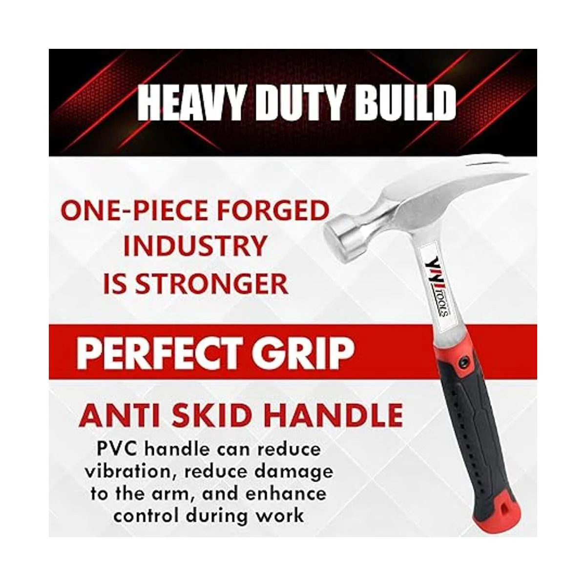 Forjado en una sola pieza, hace que el martillo sea más duradero, vida útil más larga y más seguro. Superficie lisa. La garra puede ayudarte a tirar de clavos, tablas de palanca, trabajos de demolición y mucho más. Especialmente diseñado para sacar clavos de diferentes tamaños. Cómodo, duradero, y el material y el diseño del mango del martillo pueden reducir la vibración de impacto y la caída.