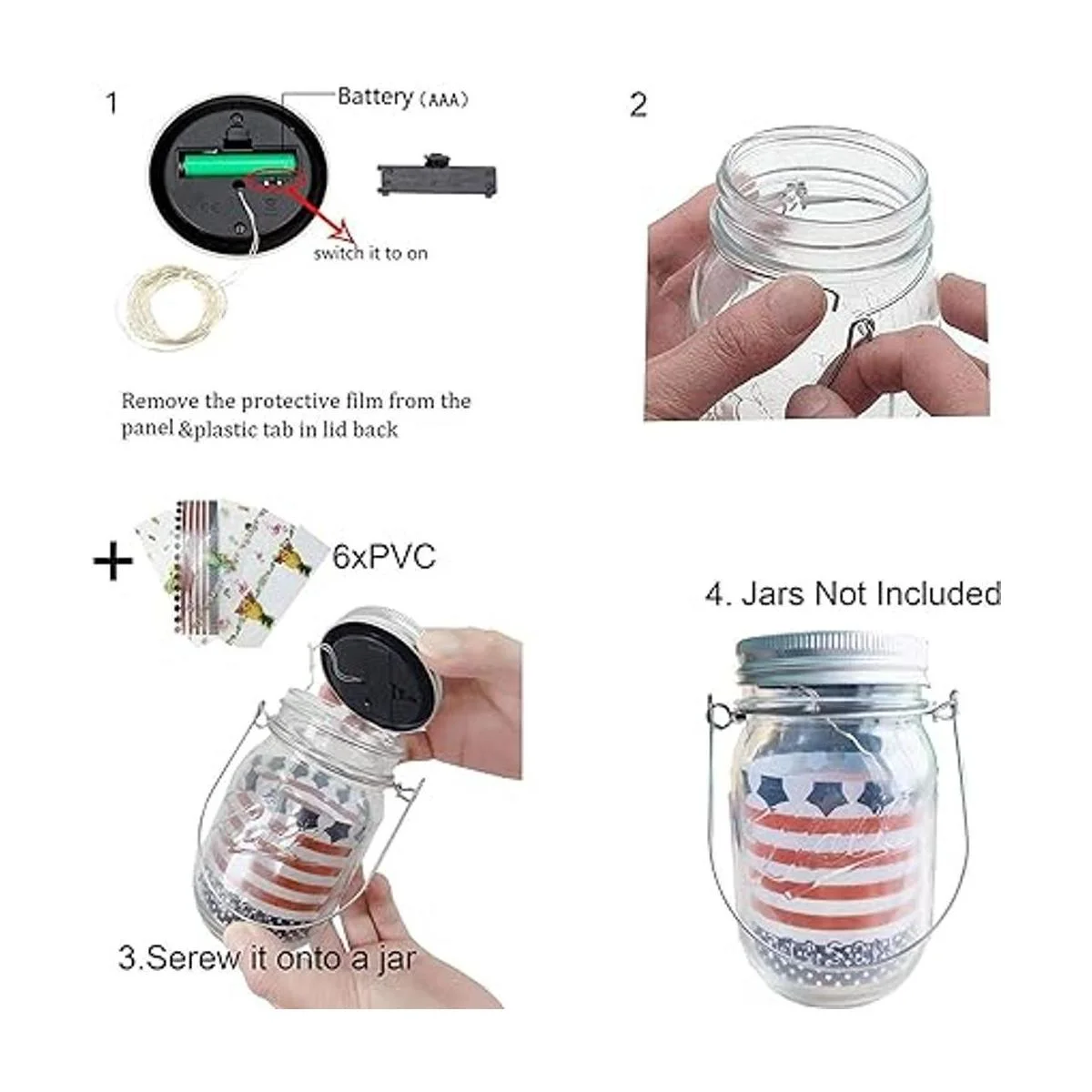 Luces solares para tapa de tarro Mason 30 LEDs tarros no incluidos, se adapta a la mayoría de tarros de conservas de boca regular, tamaño de diámetro de la tapa: 2.756 in/inserto 2.165 in. Debido a la COVID19, muchas personas están en problemas. Estamos haciendo todo lo posible para servir a los clientes. Esperamos que nuestros productos te traigan alegría y felicidad.