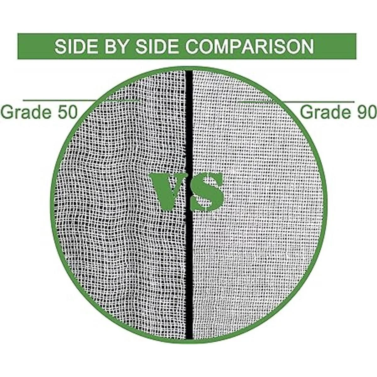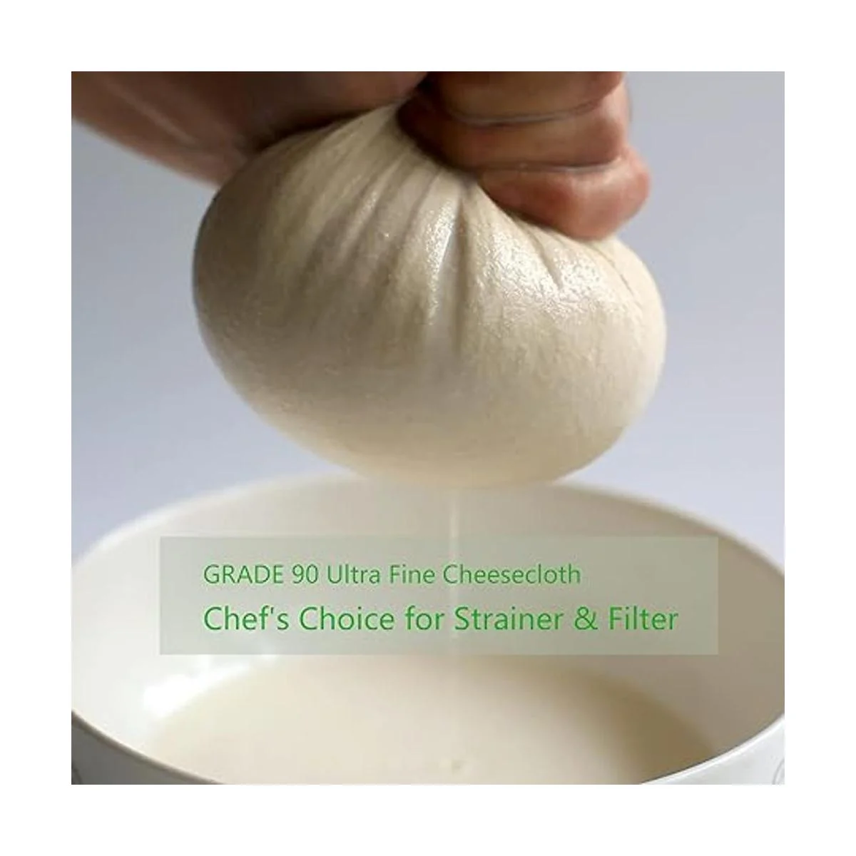 2. Elección del chef de tela de queso para colar Nuestra tela de queso de grado 90 es mucho más alta y de mejor calidad con malla de 44 x 36 en comparación con los grados inferiores, por lo que nuestra tela de queso filtra más impurezas. Esta fuerte estopilla de cocina es libre de pelusas, lavable y reutilizable, perfecta para la cocina, lo que ahorra dinero.