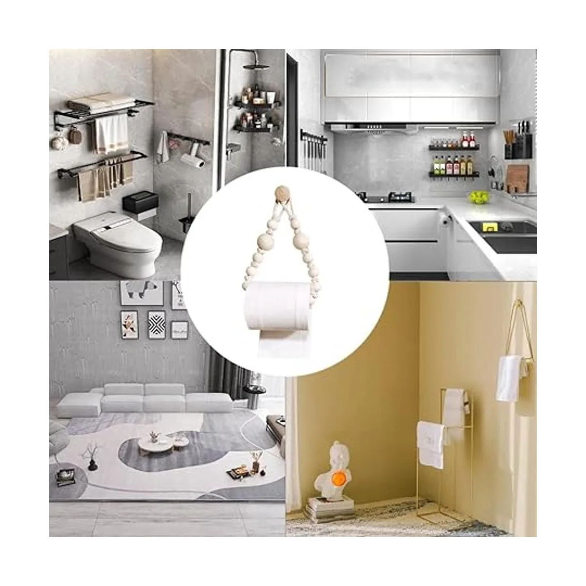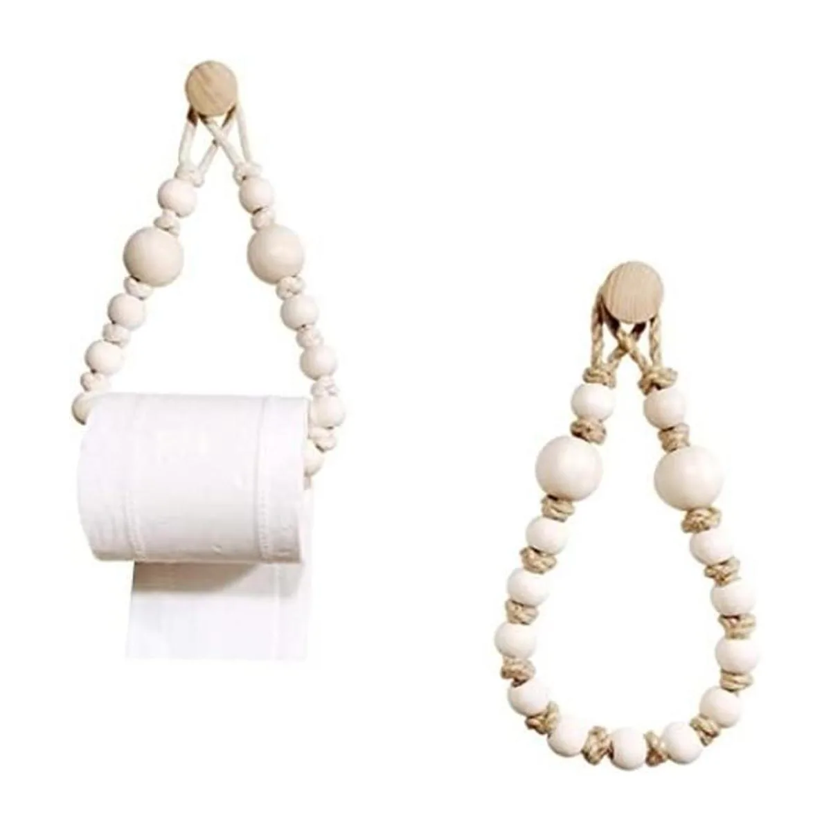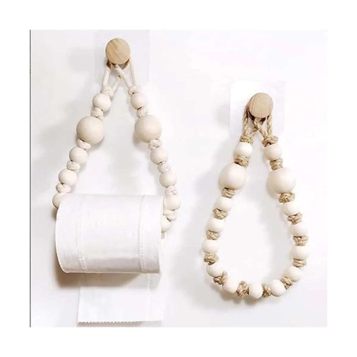 Ykendz Soporte de papel higiénico con cuentas de madera, soporte para papel higiénico, soporte para rollo de toallas para el hogar, baño, soporte de papel higiénico, decoración de pared, 2 piezas