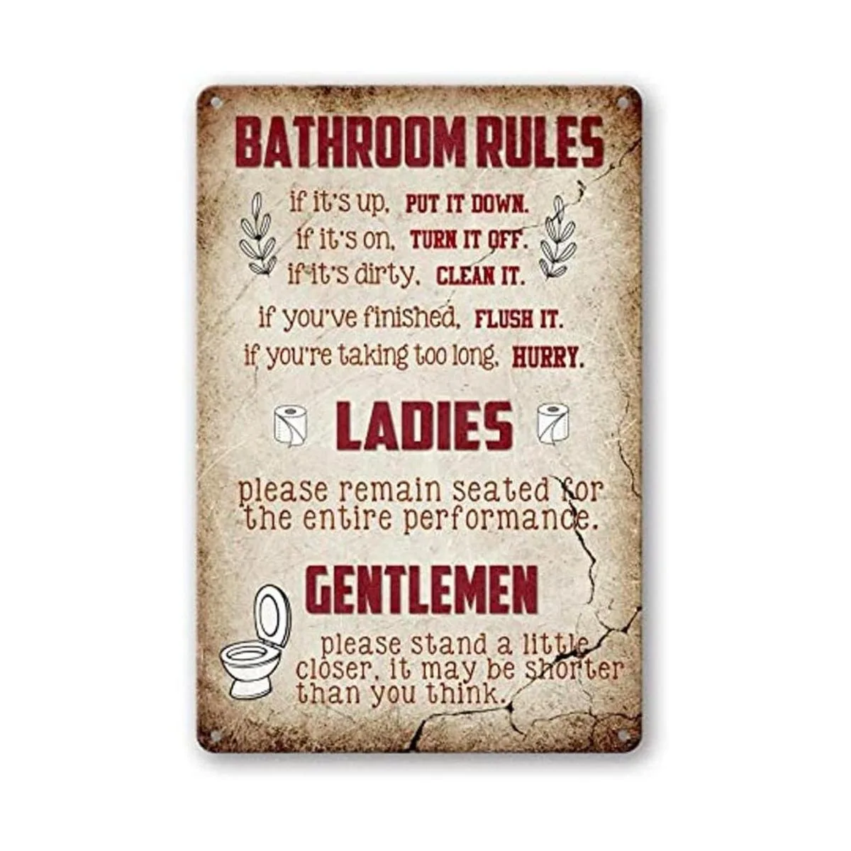 Ykhijet Reglas de baño retro vintage divertidas de 8 x 12 pulgadas, letrero de aluminio de metal, decoración de garaje, cocina, bar, bar, club, cafetería, hogar, restaurante, decoración de pared, letrero de arte, regalos para hombre