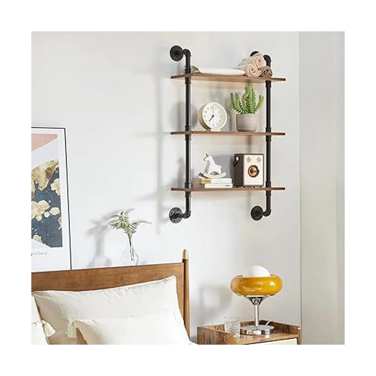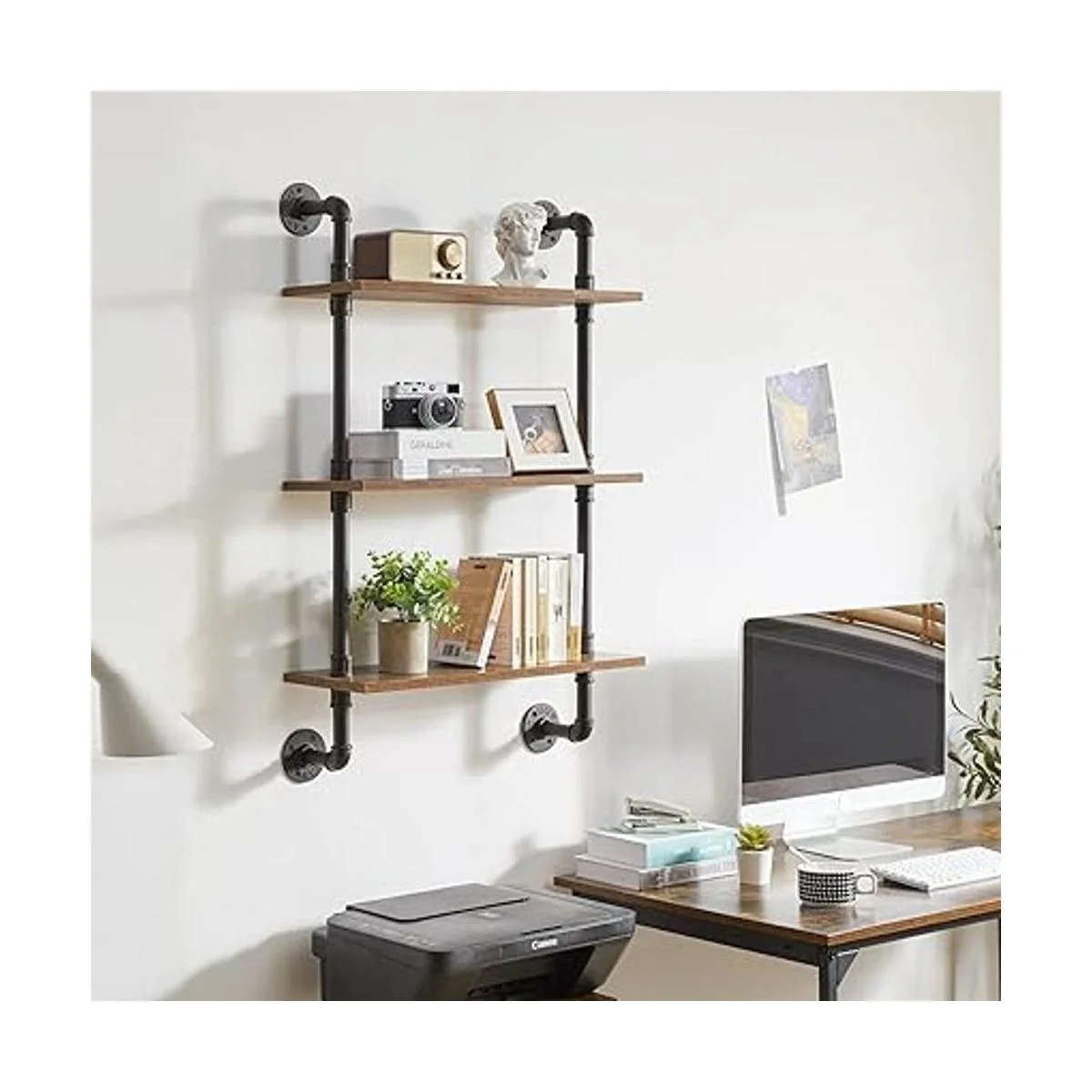 YMYNY Soporte industrial para estante de tubo de 3 niveles, estante flotante retro montado en la pared, estantería de madera para bricolaje, estantes de almacenamiento para sala de estar, dormitorio, oficina, estantería de baño de granja de 24 pulgadas, HDUHRFTM003