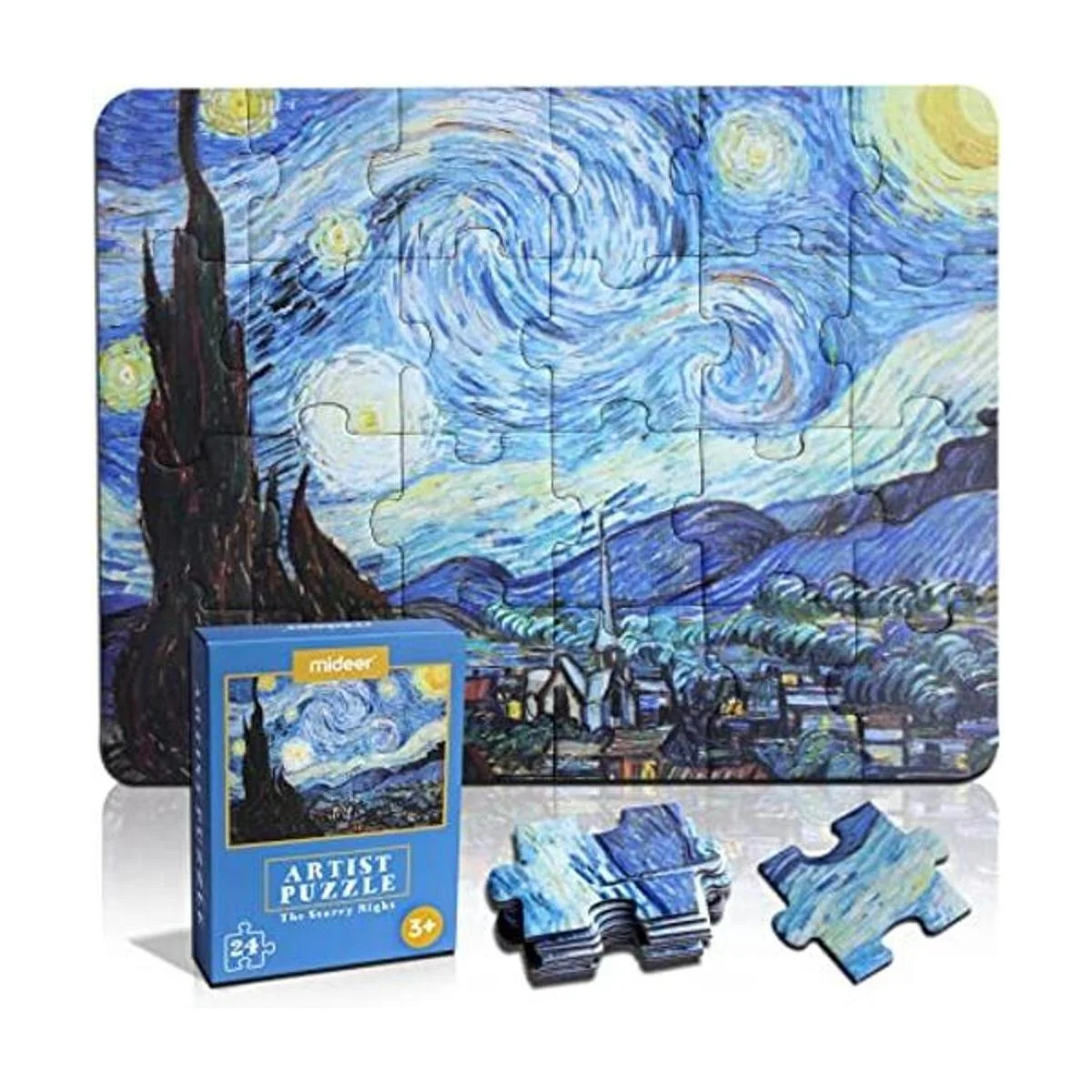 YOGEON Rompecabezas de noche estrellada de 24 piezas, rompecabezas de artista para niños de 3 a 5 años, 4 a 8 años, juego de entretenimiento de descompresión intelectual fácil y juguetes educativos de aprendizaje preescolar para niños y niñas