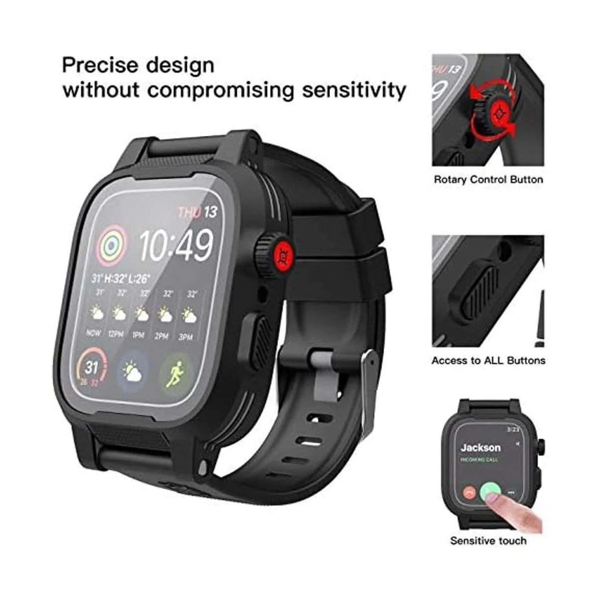 Rendimiento profesional resistente al agua: la funda impermeable para Apple Watch de 1.732 in con certificación IP68 ha sido probada más de mil veces que la funda puede proteger tu reloj en agua de 6.6 ft de profundidad durante 1 hora; con la funda puesta, puedes ir a nadar, hacer esnórquel, pesca, navegar sin quitarte tu reloj.